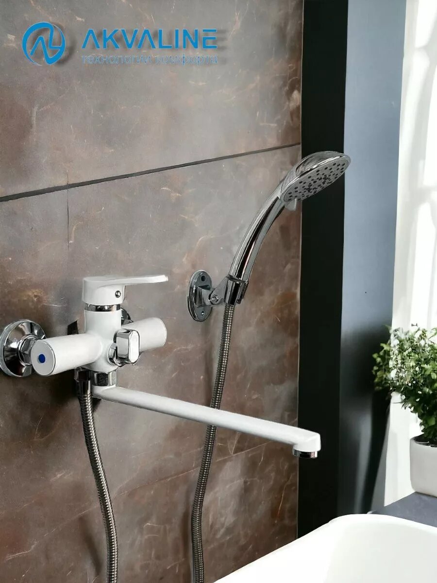 Смеситель для ванны с душем и лейкой с длинным изливом информация: