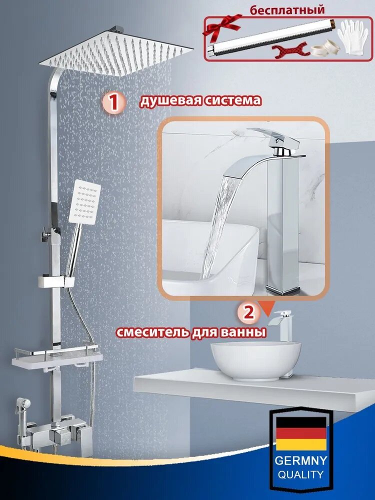 Душевая система, смеситель для ванны с душем, тропический душ, Плюс штанга для душа, серебро, 4 В 1 11 027 ₽