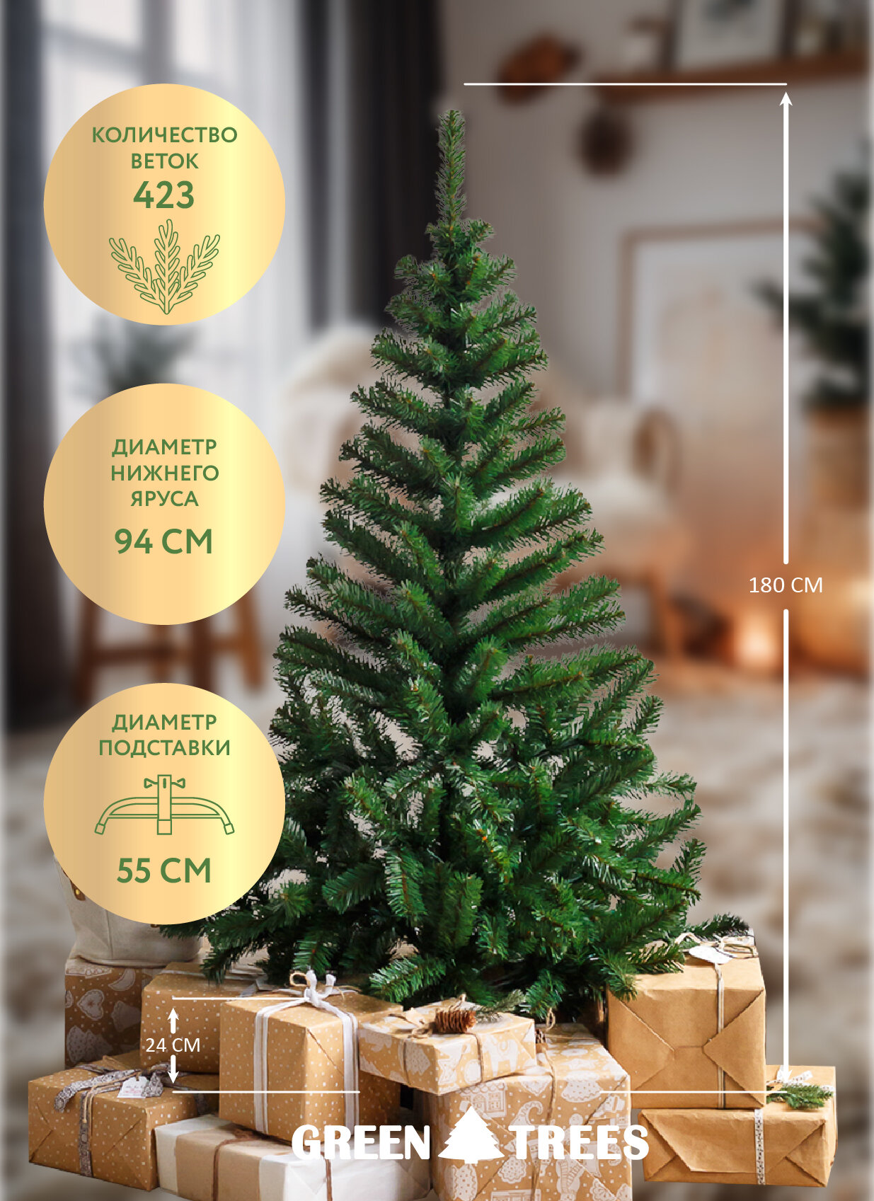 Новогодняя искусственная ель Грин Триз "Лесная сказка", плёнка ПВХ, высота 1,8 информация: