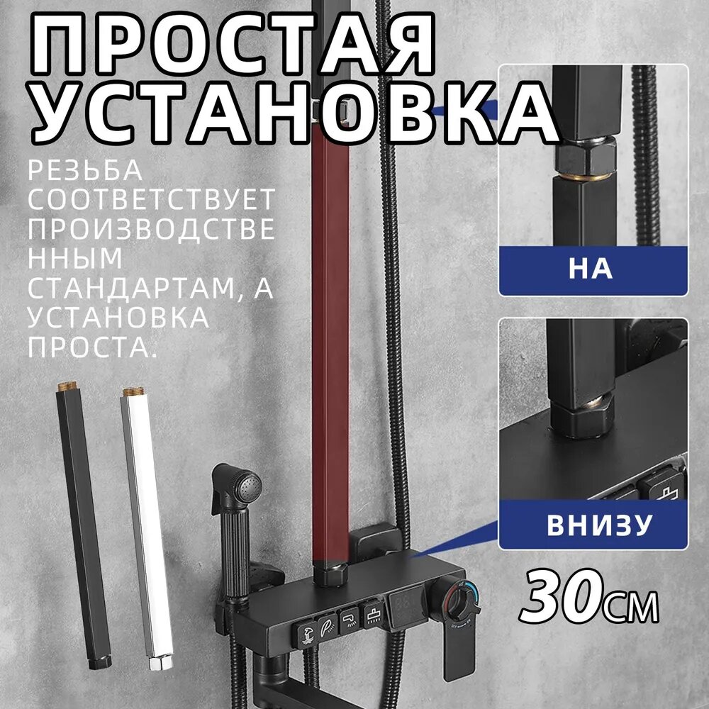 Штанга для душа, удлинитель для душевой, 3/4 держатель для душа, 30 см, Квадрат, черный информация: