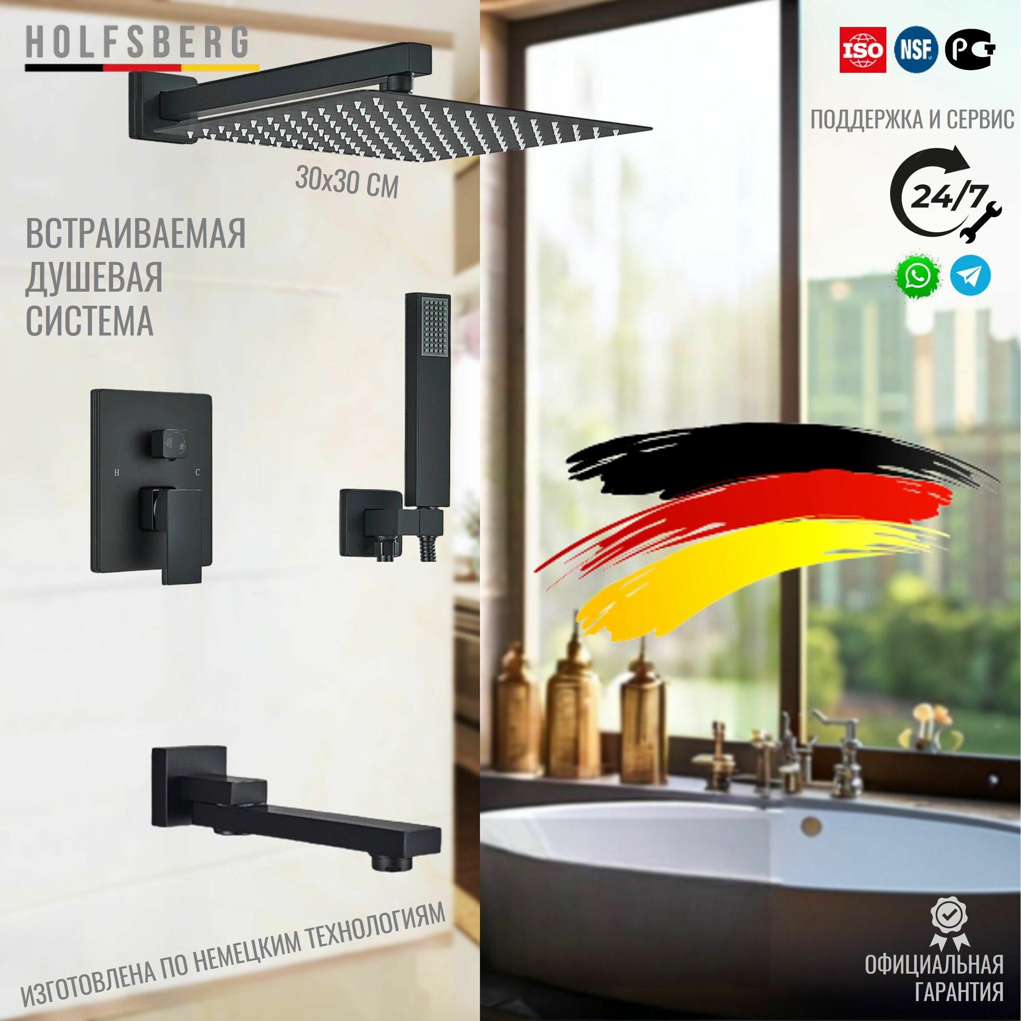 Душевая система скрытого монтажа с тропическим душем черная 30х30 см HOLFSBERG S30 3v1 BL-1 информация: