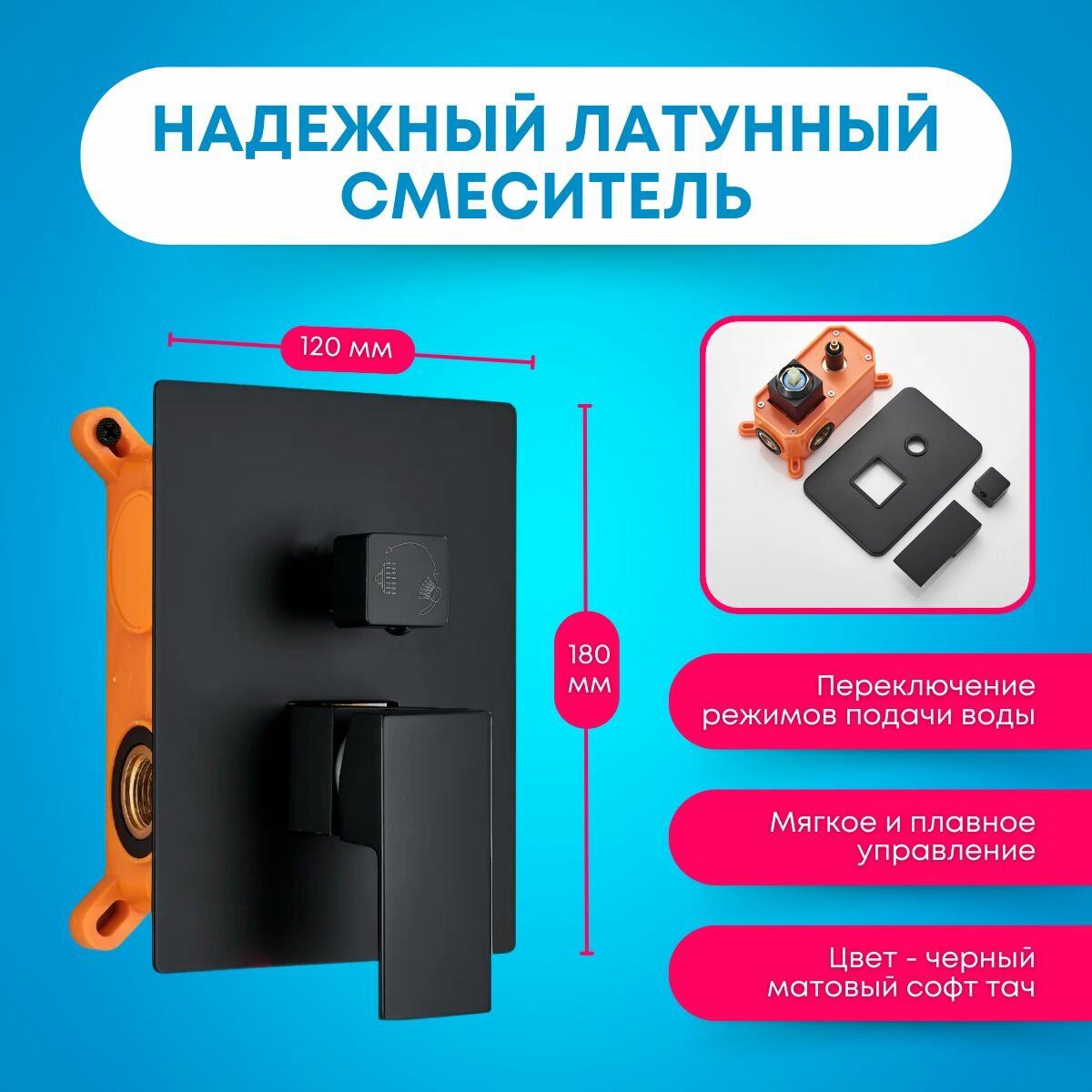 Душевой комплект встраиваемый с тропическим душем и изливом "пистолет" черный матовый Southlife информация: