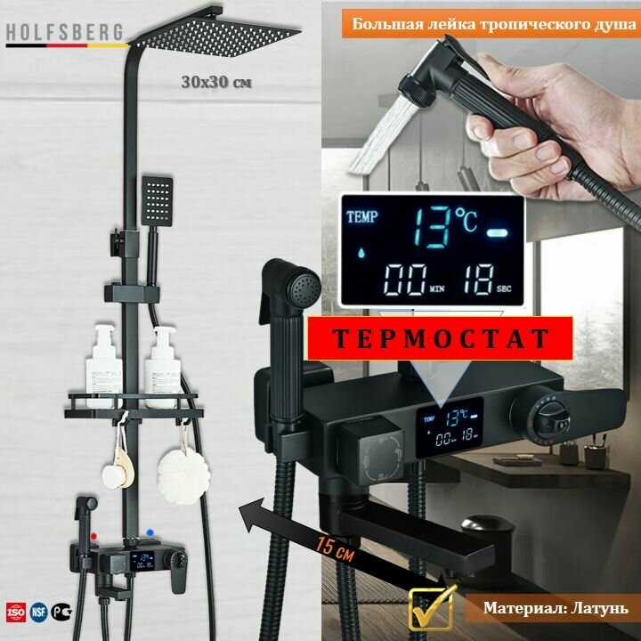Душевая система с термостатом черная и с цифровым дисплеем HOLFSBERG A30 TERMO DG BL2 информация: