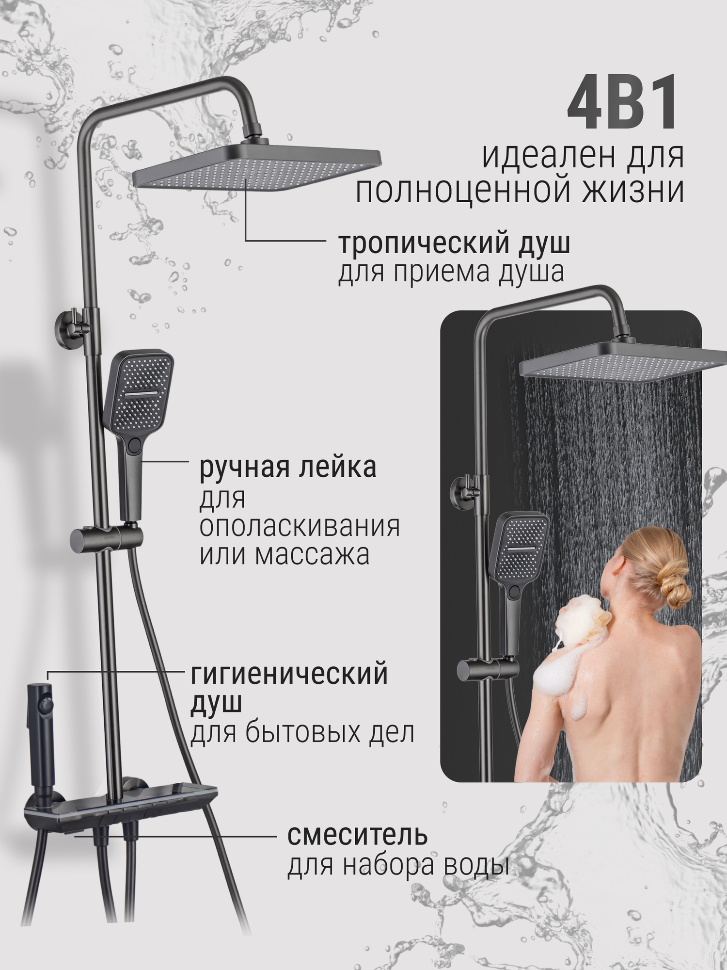 Душевая система Vexorus с тропическим душем и подсветкой, комплект 4 в 1 информация: