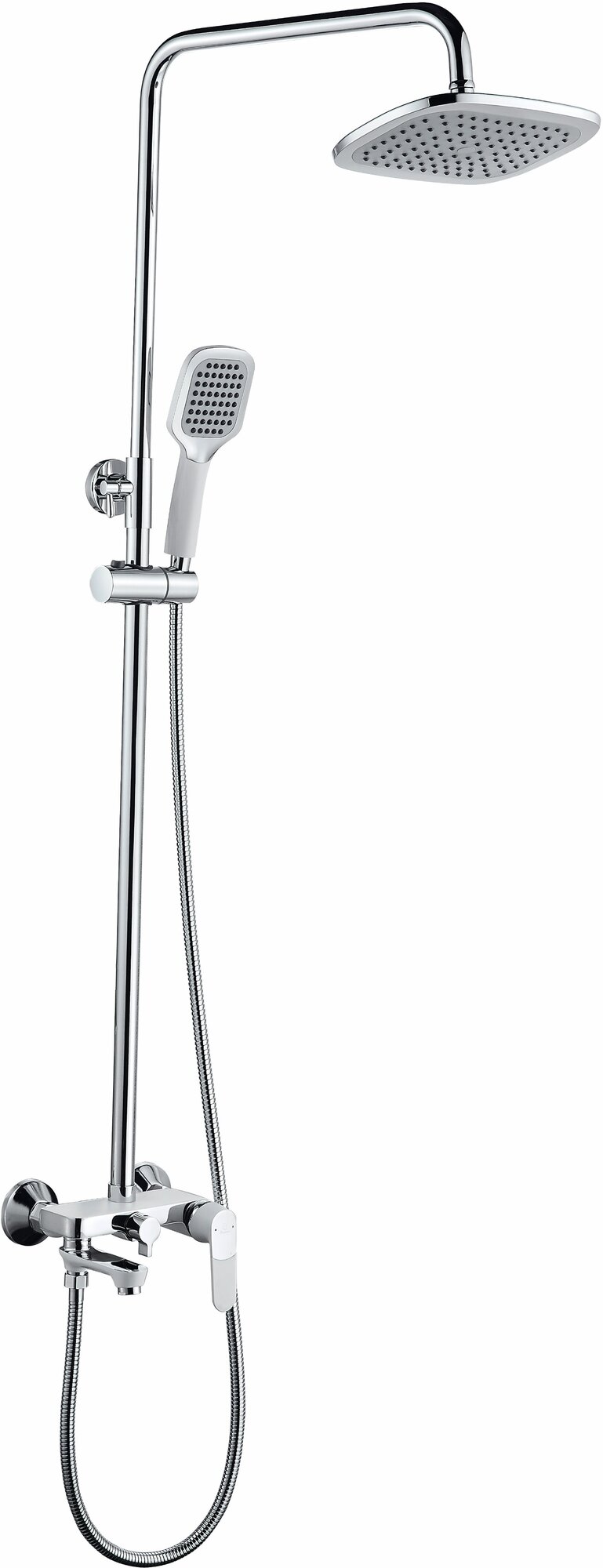 Отзывы на Душевая стойка Diadonna D87-335114W с коротким изливом, лейка на шланге, верхний душ, картридж 35 мм, хром с белым