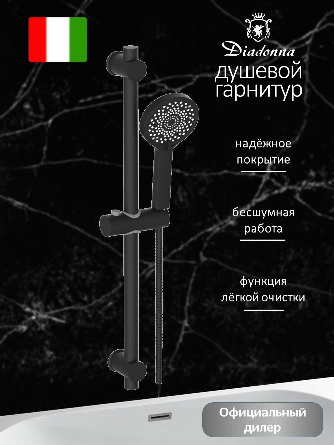 Душевой гарнитур Diadonna D64-0007BL, нержавеющая сталь, душевая лейка 3 режима, черный информация: