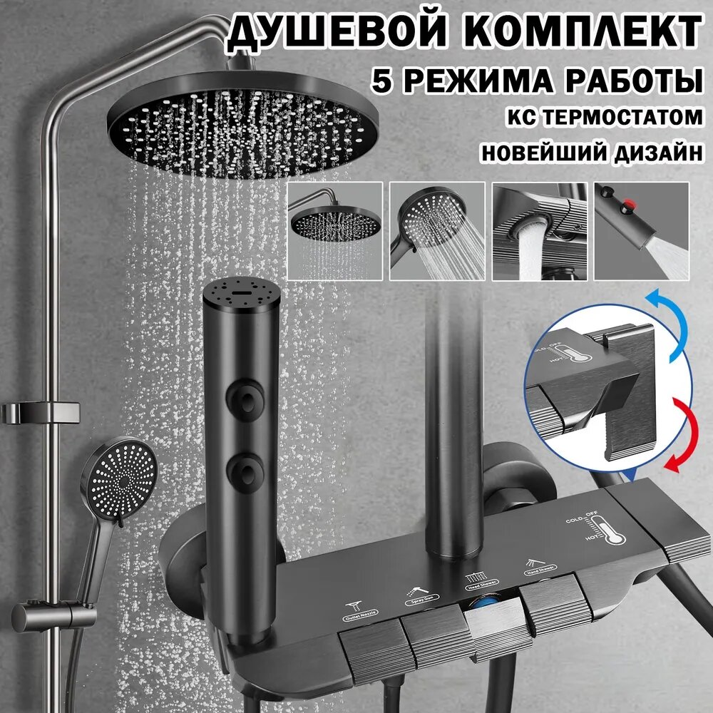 Отзывы на Душевая система с тропическим душем, кран для ванной с душем, набор для ванной комнаты, серый