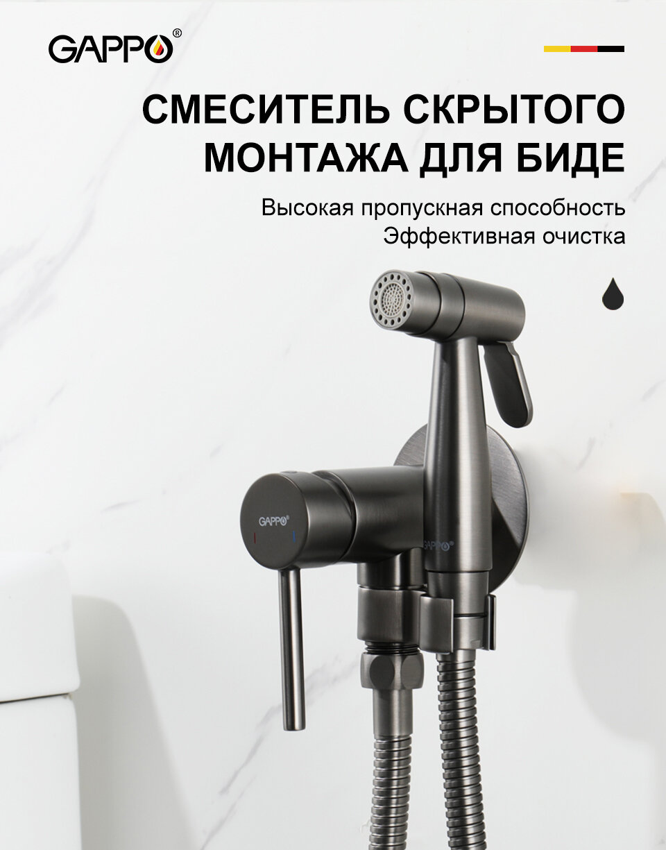 Встраиваемый гигиенический душ Gappo G7206-9, латунь, оружейная сталь информация: