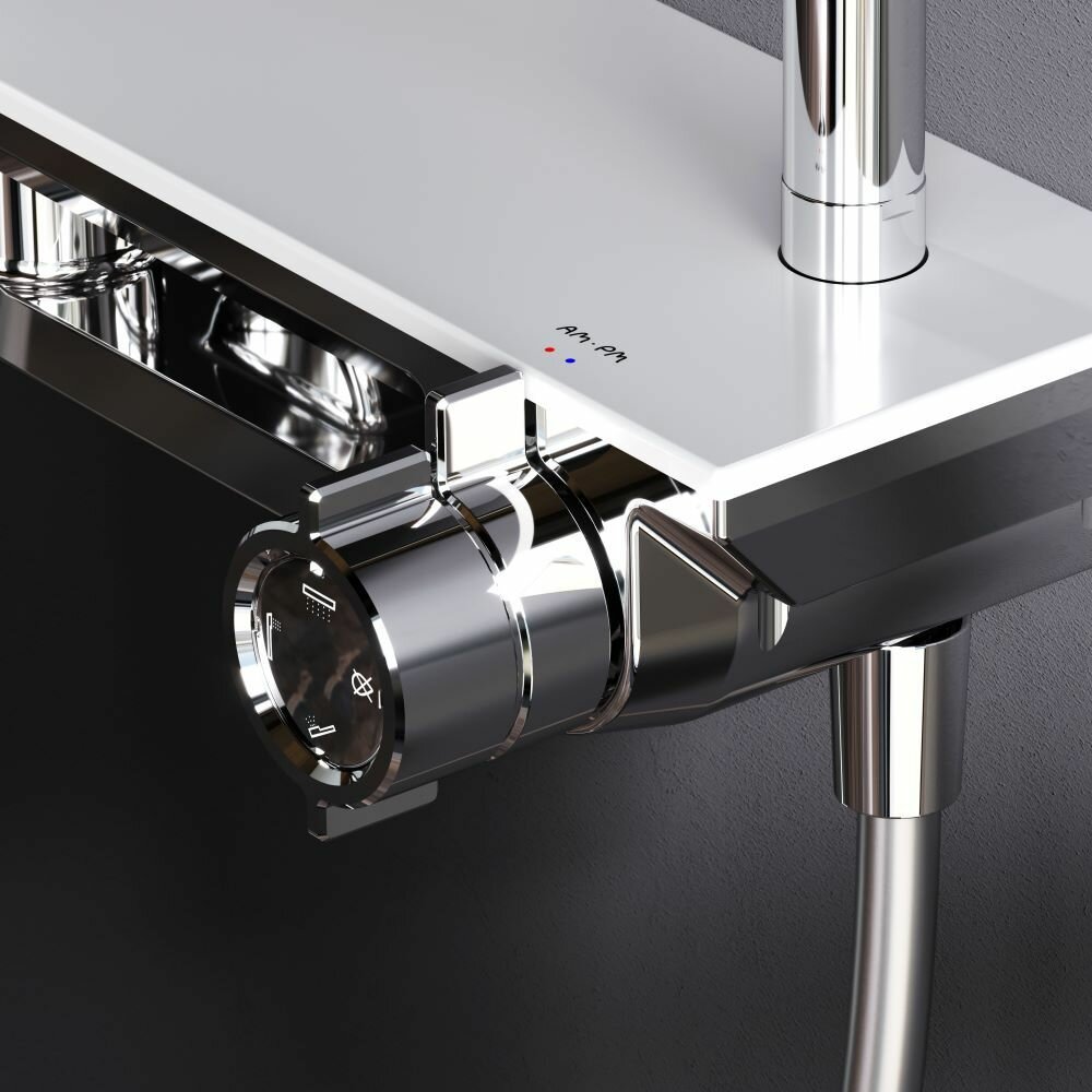 Отзывы на Душевая система с тропическим душем AM.PM Gem смеситель с полкой, верхний душ 220мм, хром