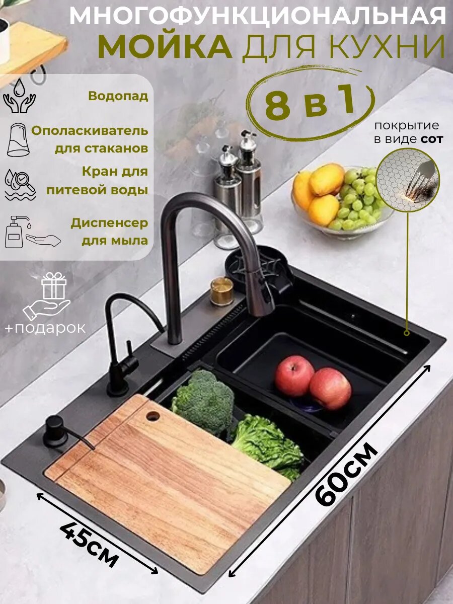 10 цен на Многофункциональная мойка для кухни 60х45см из нержавеющей стали