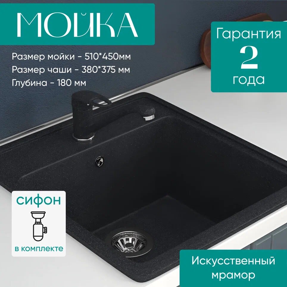 10 цен на Кухонная мойка SIM GRAN S-10, искусственный мрамор, прямоугольная, чёрная, матовая
