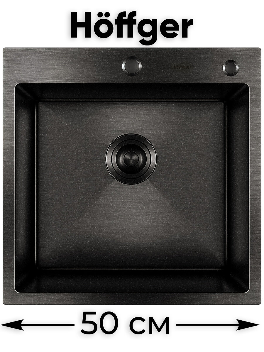 10 цен на Кухонная мойка Hoffger 5050 Black Eco Графит, 50x50 см, нержавеющая сталь PVD, врезной монтаж