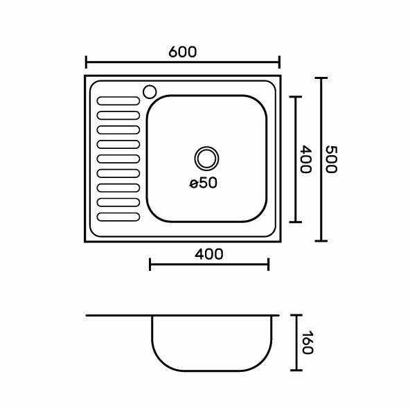 Мойка для кухни FABIA накладная, 60х50, глубина 160 мм, нержавеющая сталь информация: