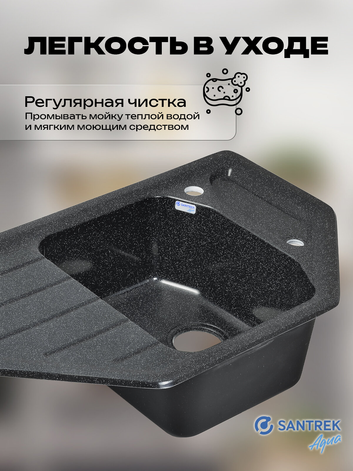 Мойка SANTREK AQUA ANGLE SA-A800 угловая 790*490 мм (черный-308) (без сифона) информация: