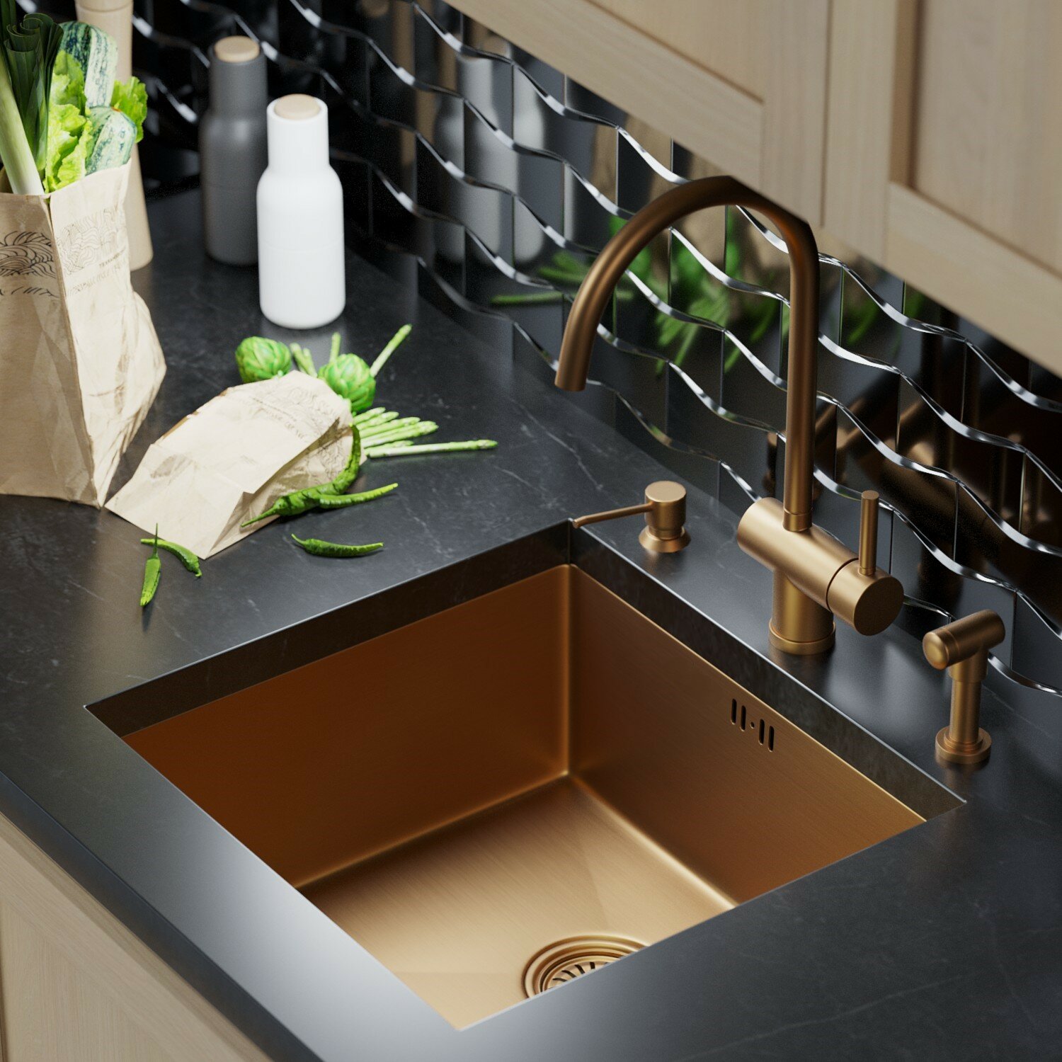 Отзывы на Мойка кухонная 45х42 см, нержавеющая сталь 3мм, PVD-покрытие, цвет бронза, сифон в комплекте
