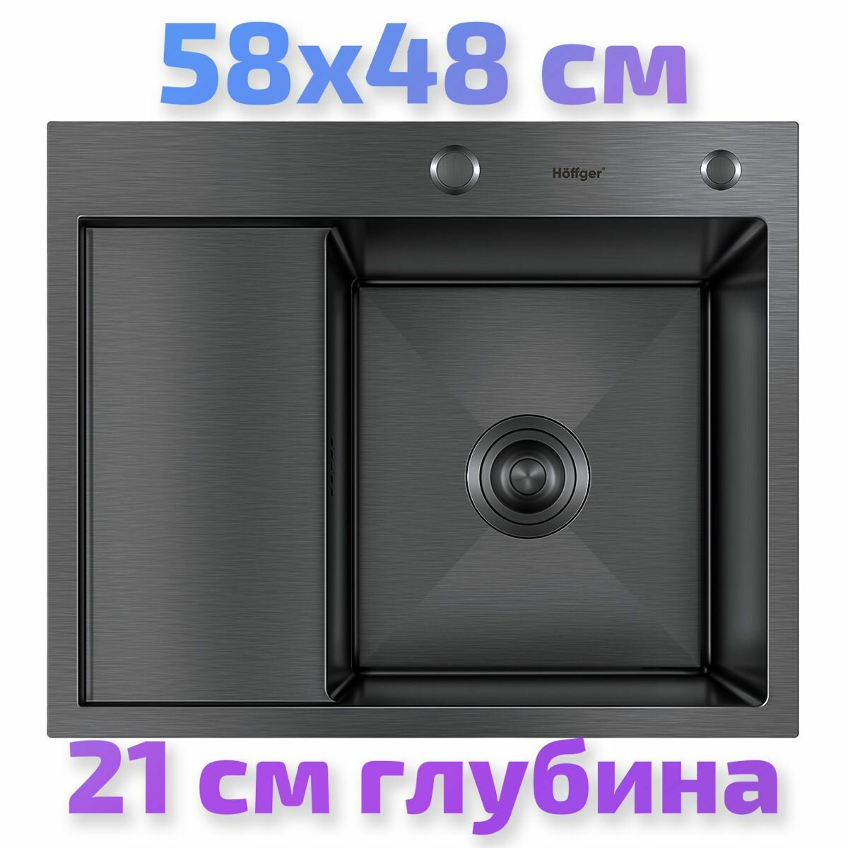 Мойка для кухни Hoffger 5848R Black (Графит), правая чаша, 58x48, нержавеющая сталь с PVD покрытием, врезной монтаж информация: