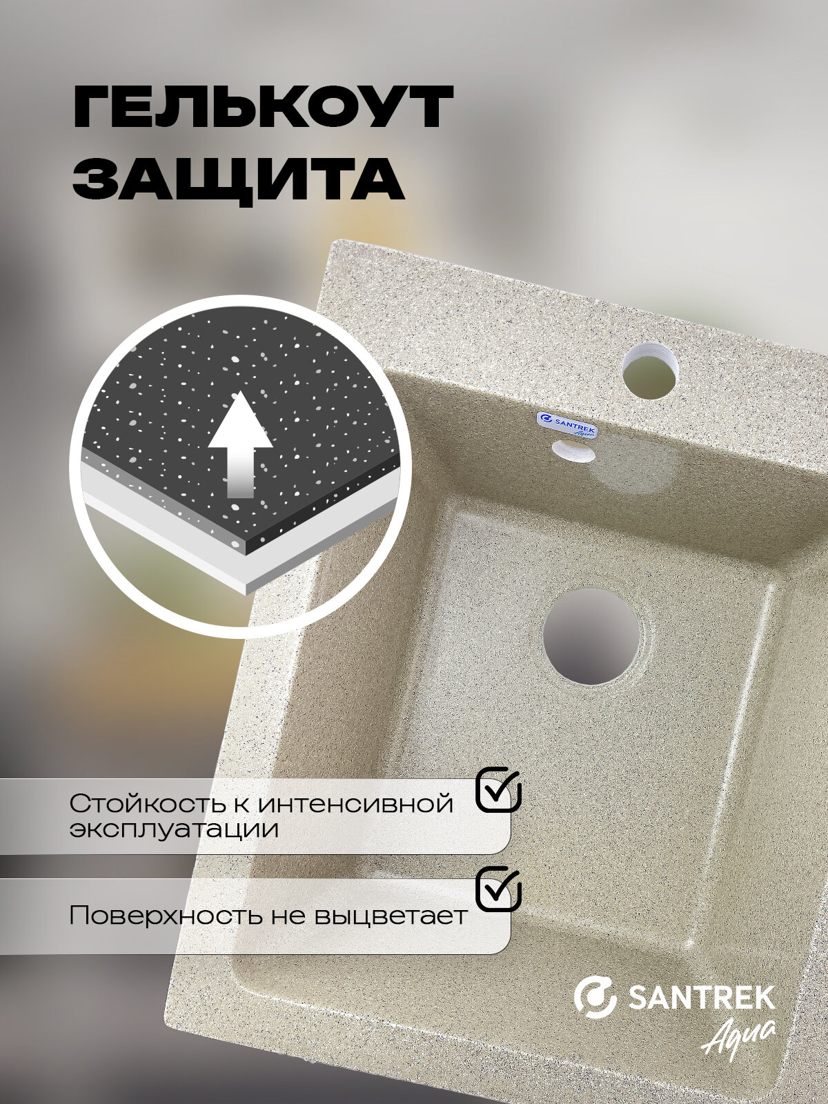 Мойка SANTREK AQUA BOXY SA-B505 1 чаша 427*505 мм (песок-302) (без сифона) информация: