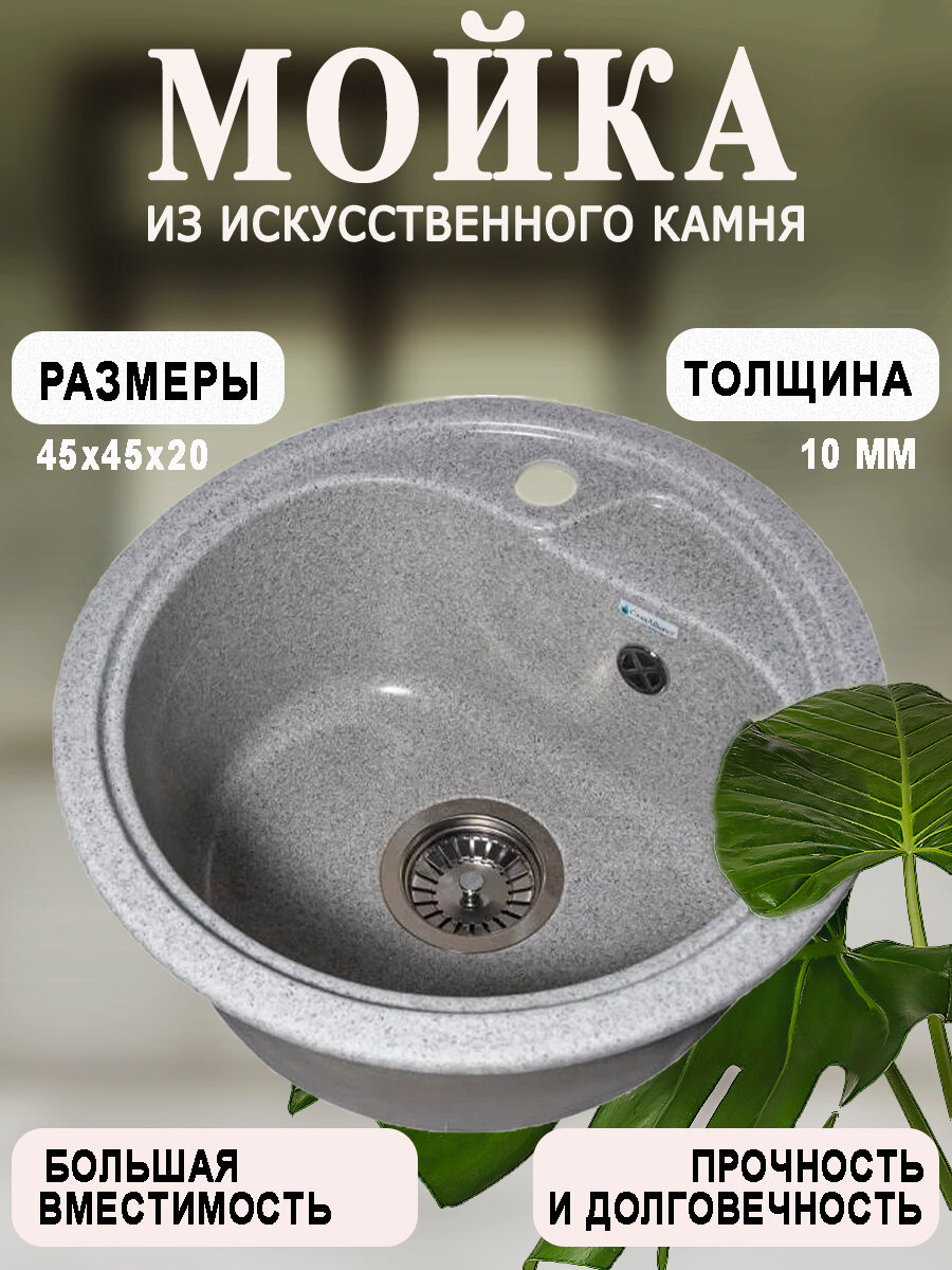 10 цен на Кухонная мойка мраморная GranAlliance G-13 Серая матовая круглая D-446 мм без сифона