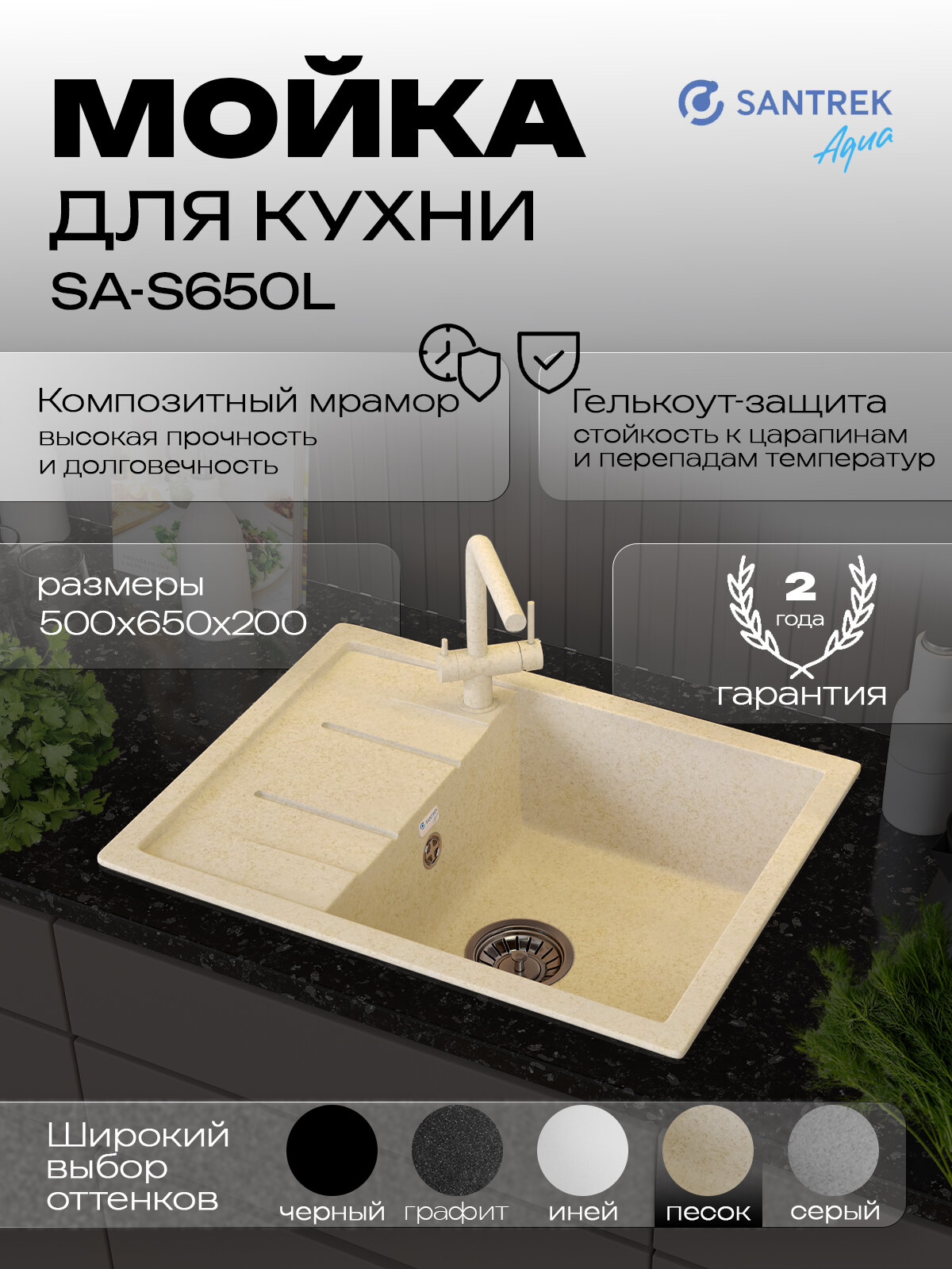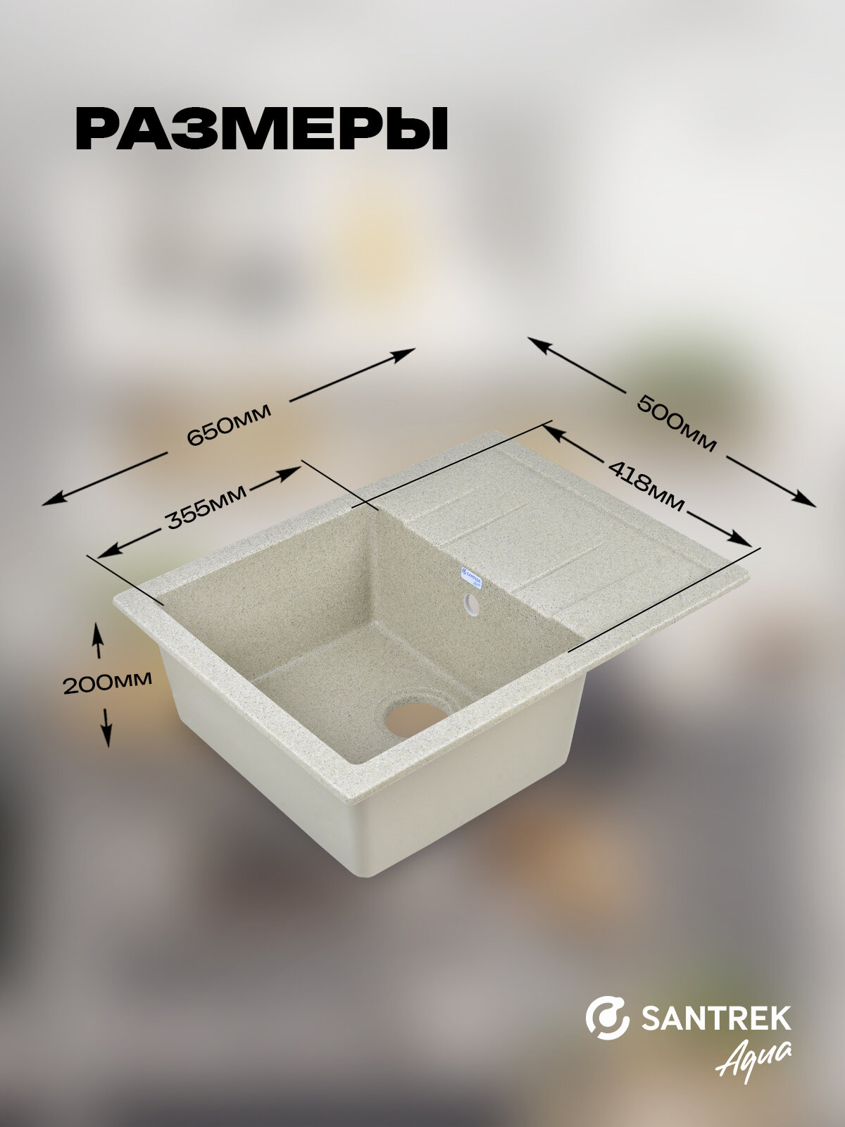 Мойка SANTREK AQUA SQUARE SA-S650L чаша + крыло 650*500 мм (песок-302) (без сифона) информация: