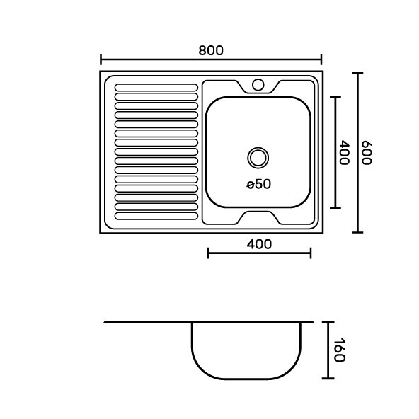 Мойка кухонная FABIA накладная 80х60 см правая толщина 0,4 мм. информация: