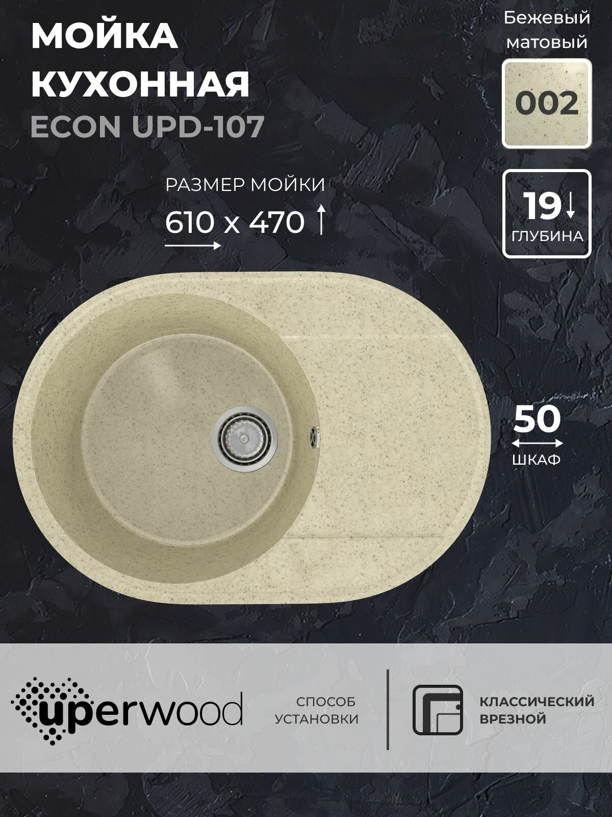 Кухонная мойка из искусственного камня Uperwood ECON UPD-107-002, овальная, бежевая матовая информация: