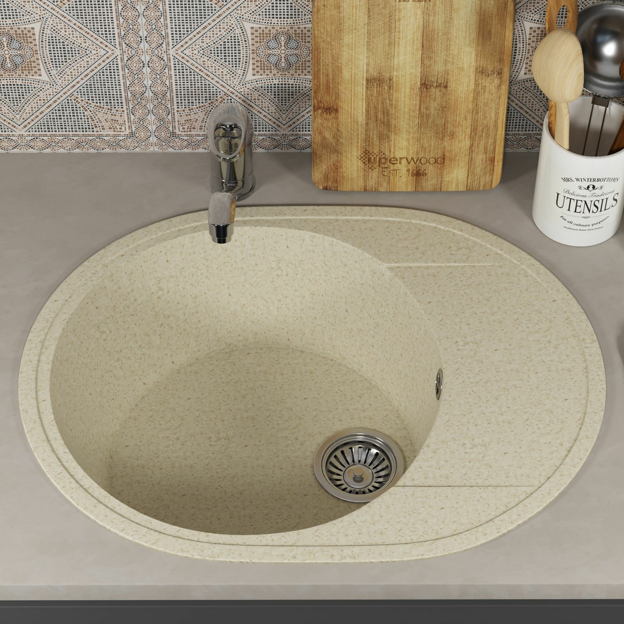 Отзывы на Кухонная мойка из искусственного камня Uperwood ECON UPD-107-002, овальная, бежевая матовая