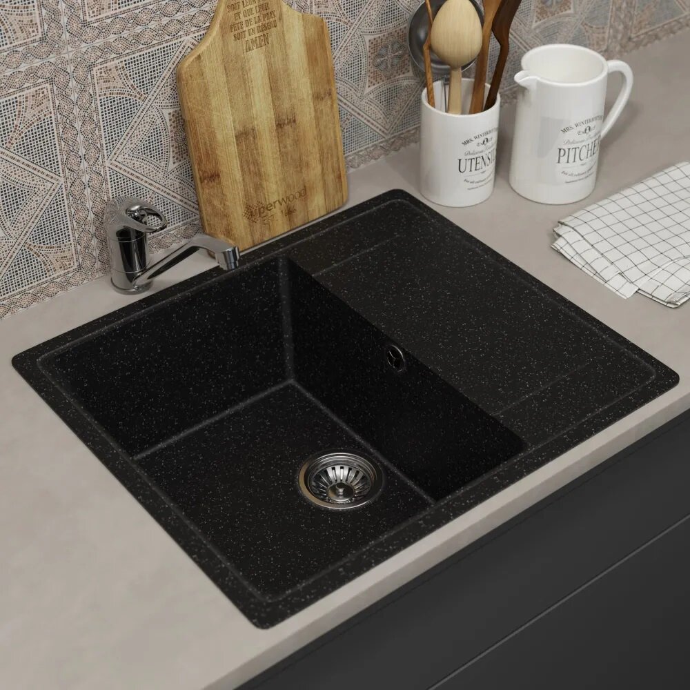 Отзывы на Кухонная мойка из искусственного камня Uperwood ECON UPD-201-004, прямоугольная, черная матовая