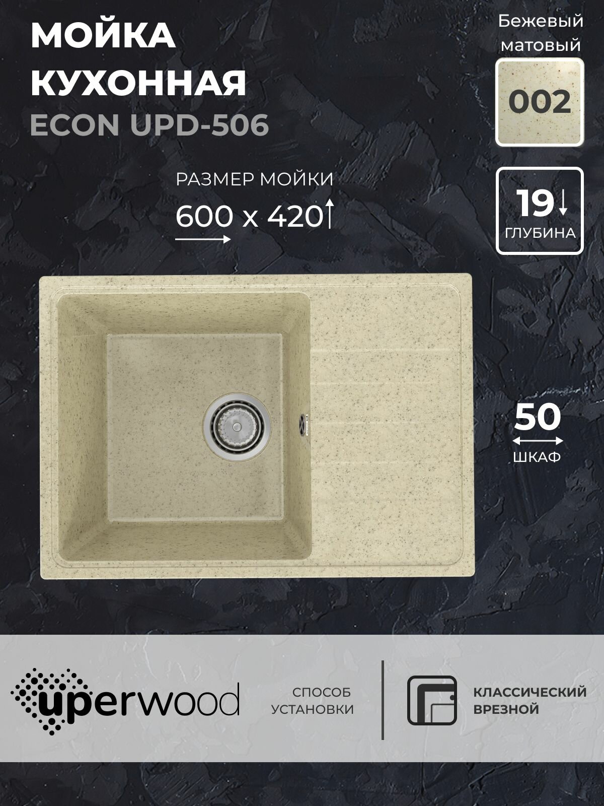 10 цен на Кухонная мойка из искусственного камня Uperwood ECON UPD-506-002, прямоугольная, бежевая матовая
