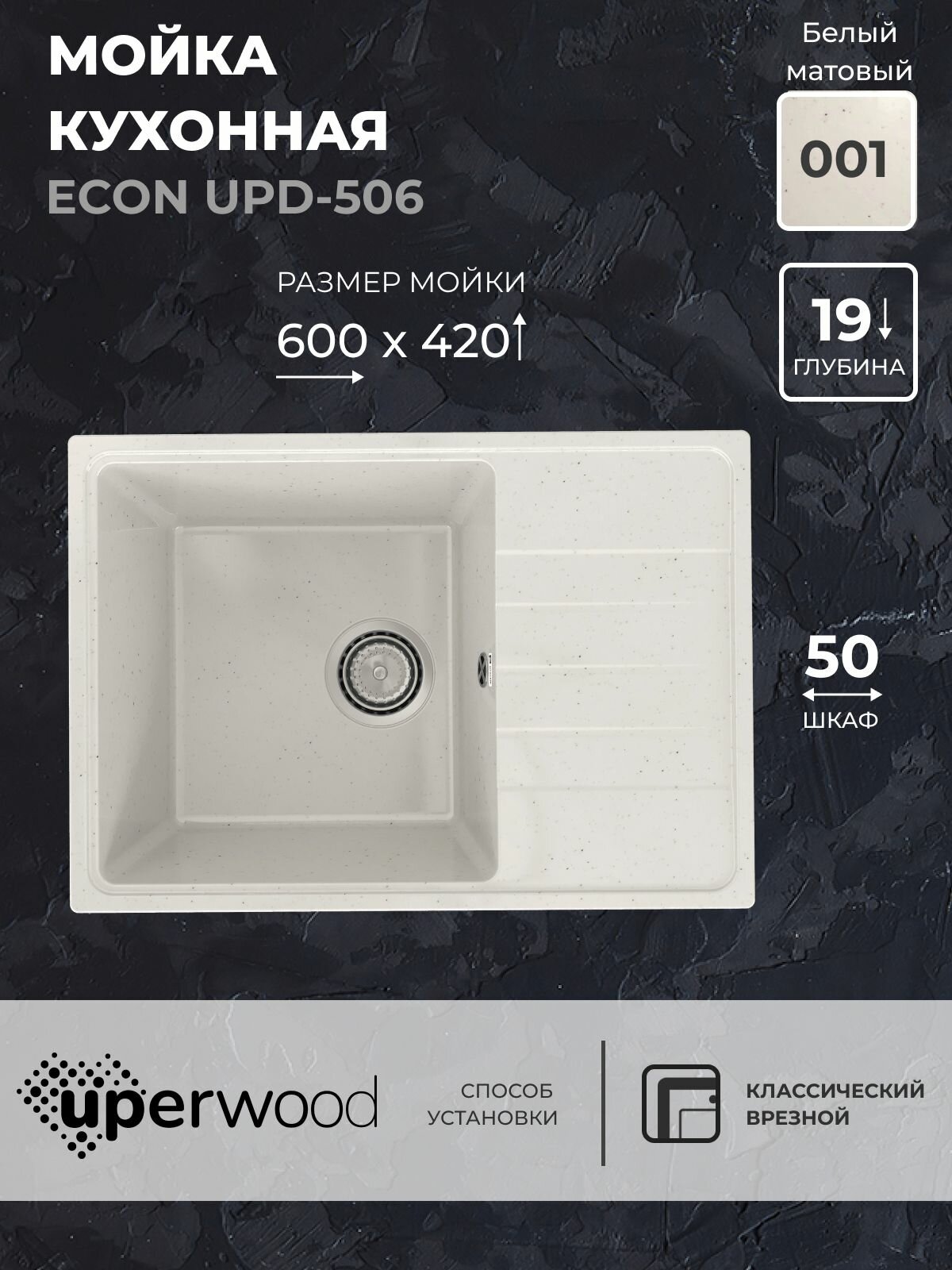 Отзывы на Кухонная мойка из искусственного камня Uperwood ECON UPD-506-001, прямоугольная, белая матовая