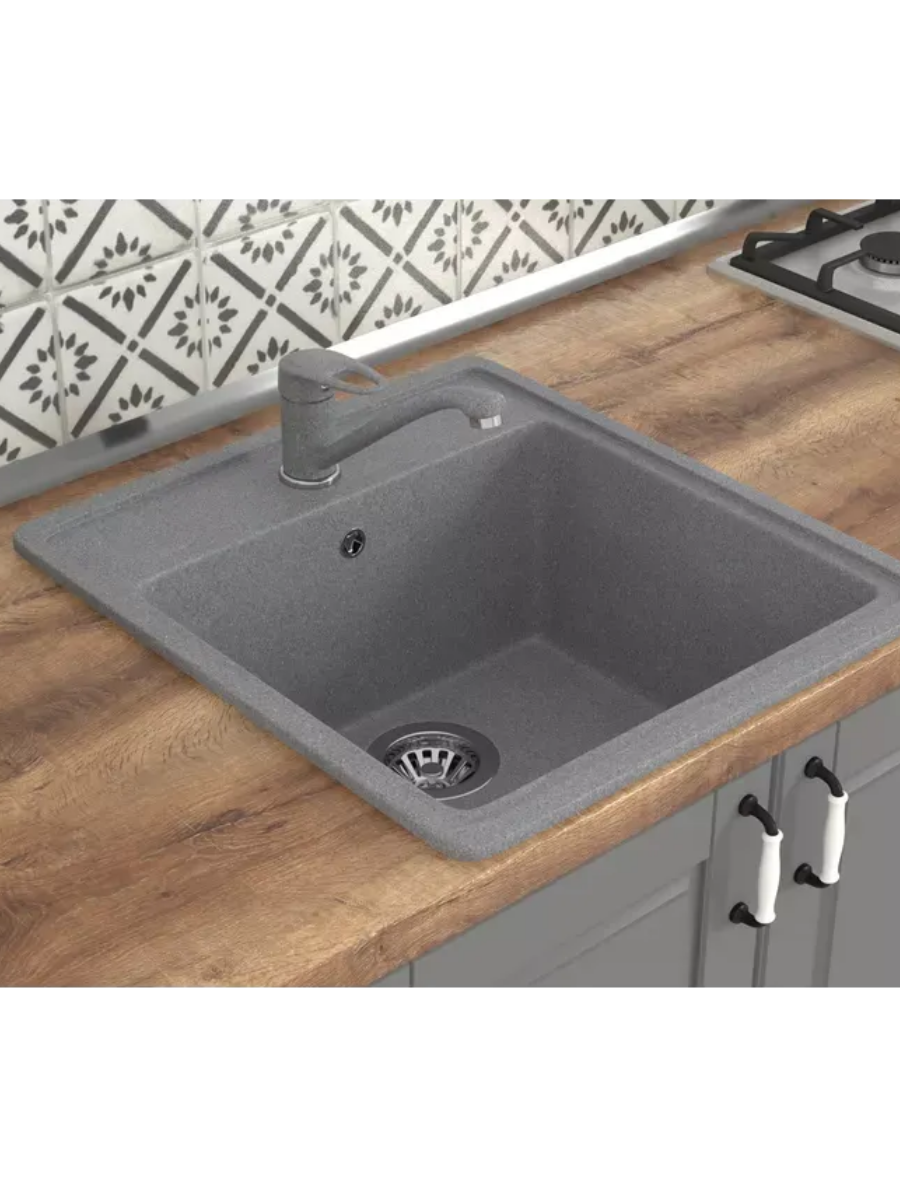 10 цен на Мойка для кухни Gamma Stone GS-10 309 из искусственного камня с сифоном, темно-серый матовый