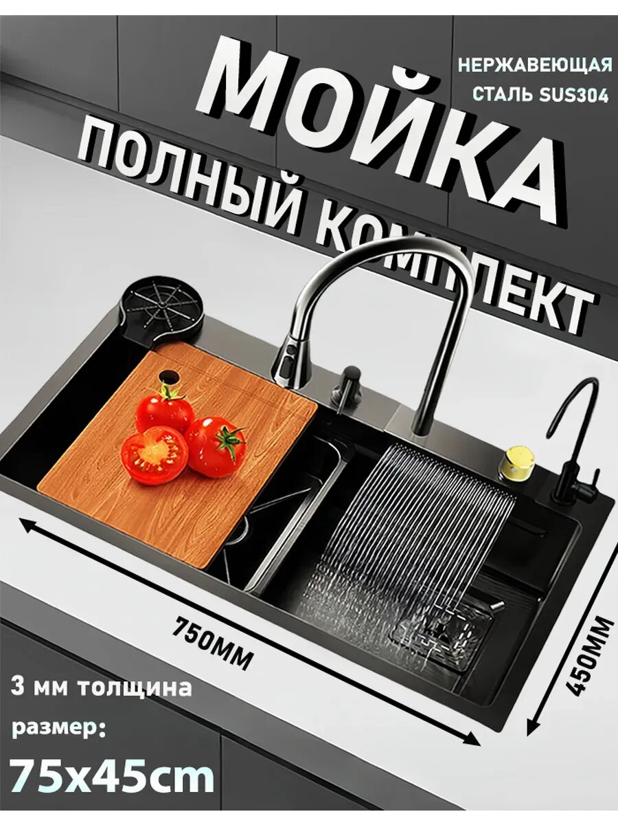 Мойка для кухни из нержавеющей стали с водопадом 75х45, многофункциональная раковина для кухни информация: