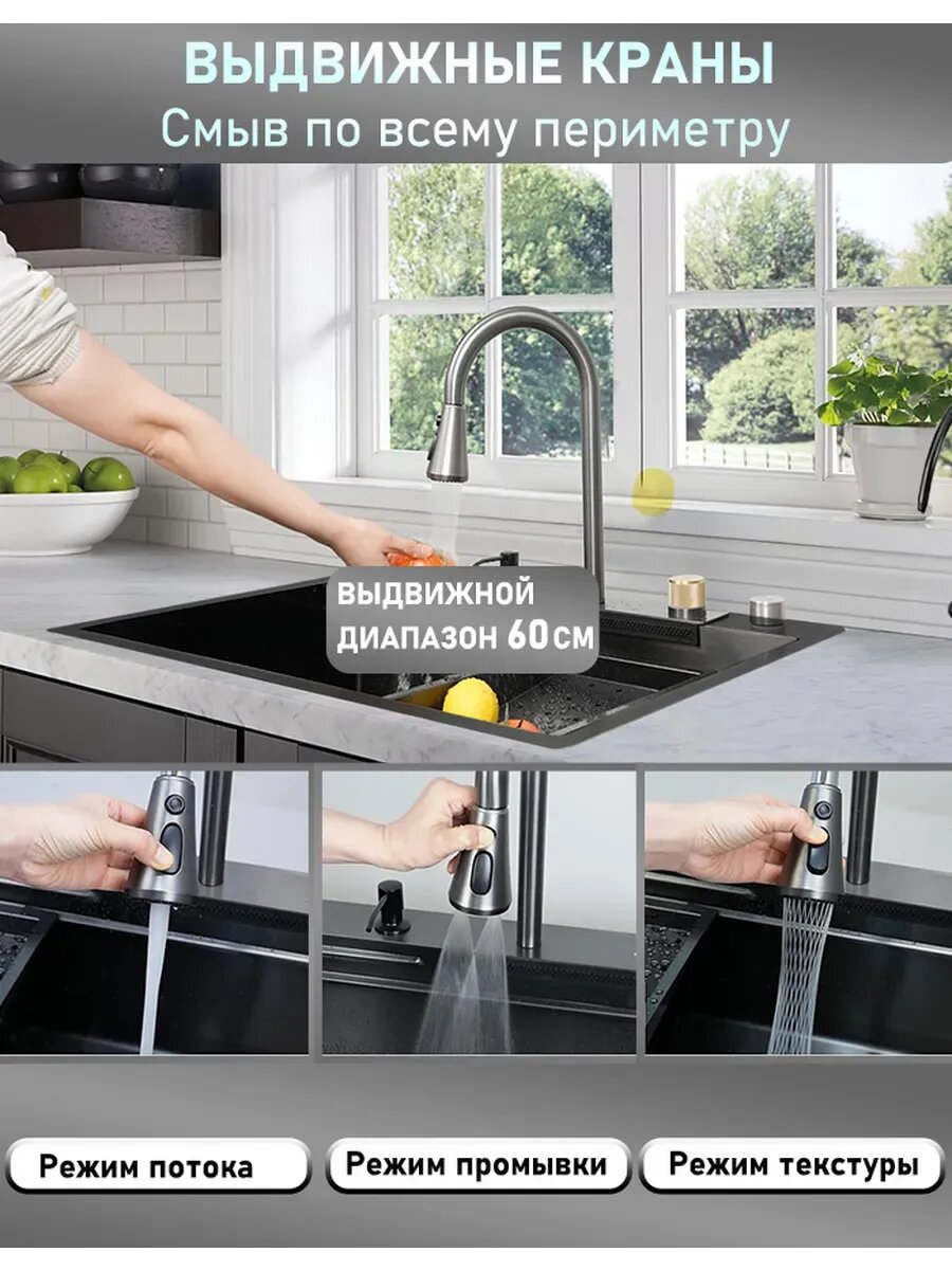 10 цен на Мойка для кухни из нержавеющей стали с водопадом 75х45, многофункциональная раковина для кухни