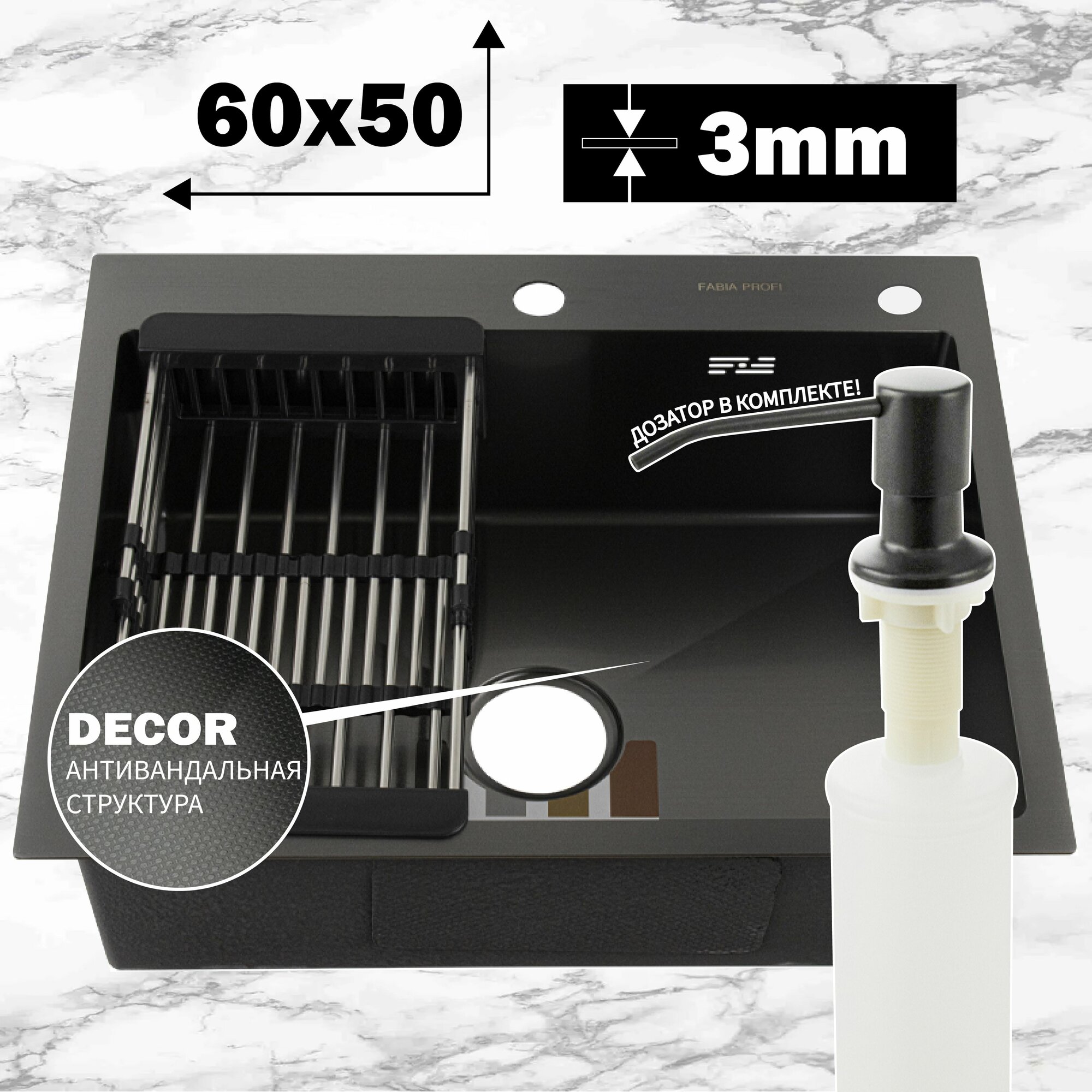Мойка FABIA Profi 60503DG графит врезная для кухни 60х50 см, Раковина из нержавеющей стали с дозатором информация: