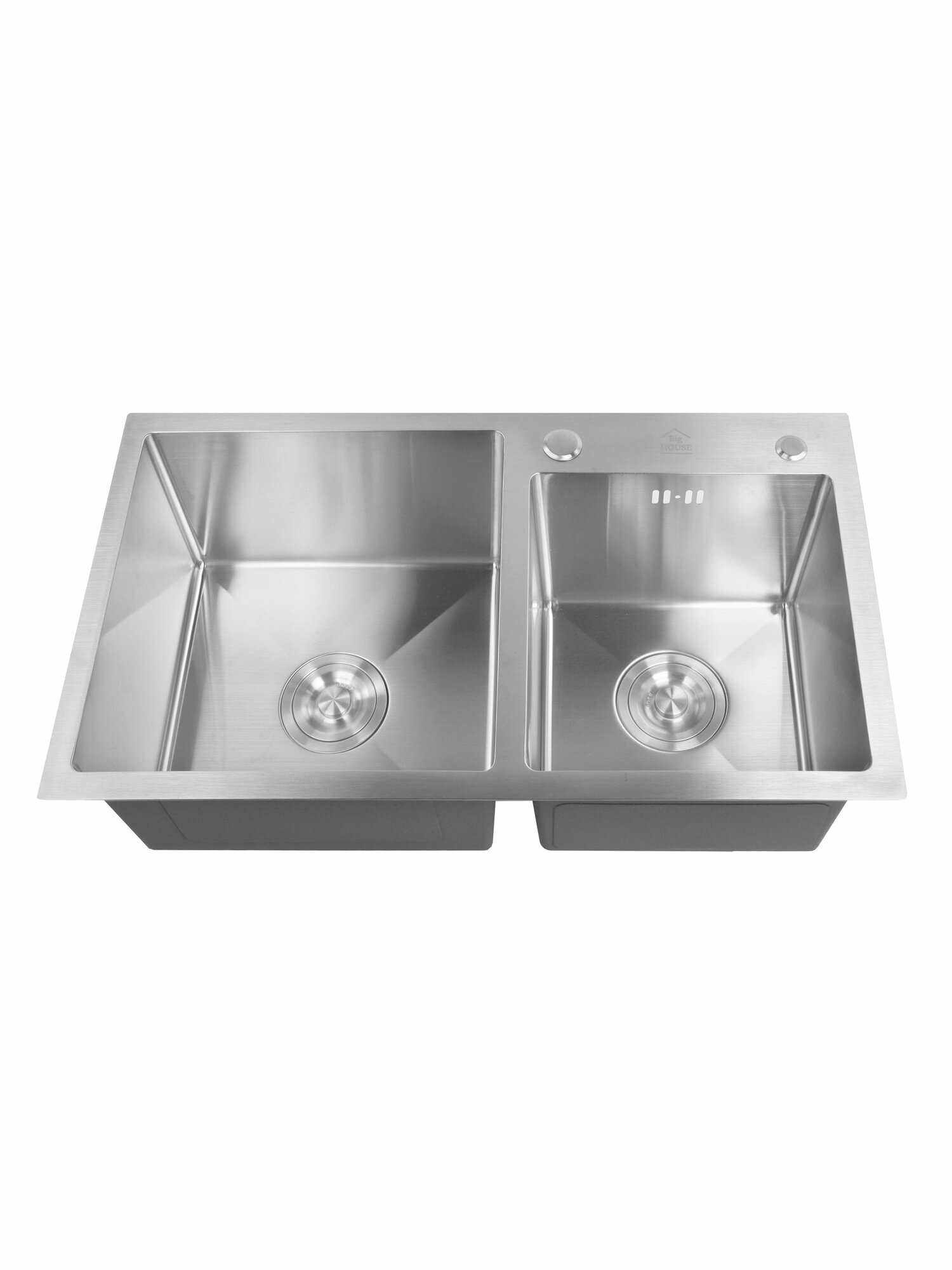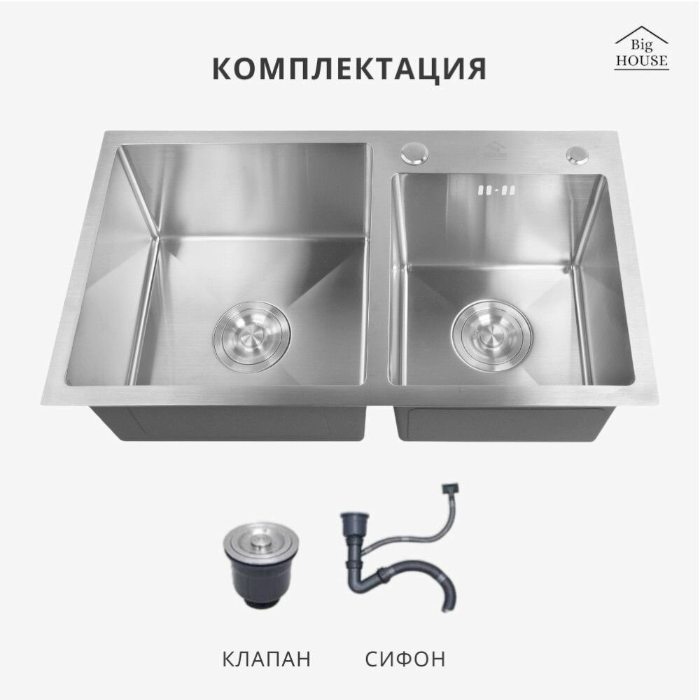 Мойка врезная Big House Двойная 72х40 см, толщина 3,0х0,8 мм, глубина 215 мм, сифон с переливом информация: