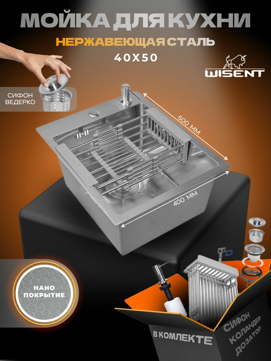 Мойка для кухни нержавеющая врезная с нано-покрытием 40*50 WISENT информация: