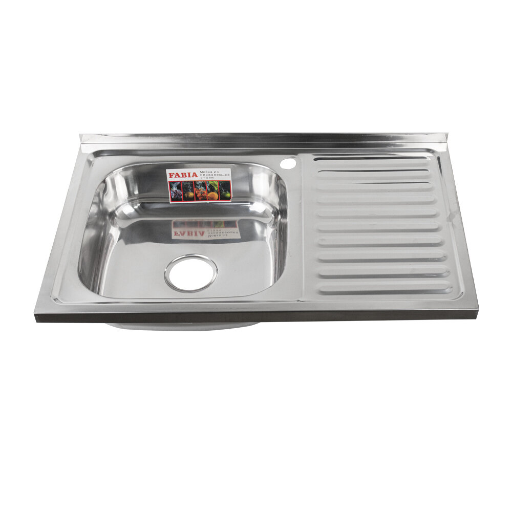 10 цен на Мойка для кухни FABIA накладная, 80х50, глубина 160 мм, большой сифон с переливом, нержавеющая сталь