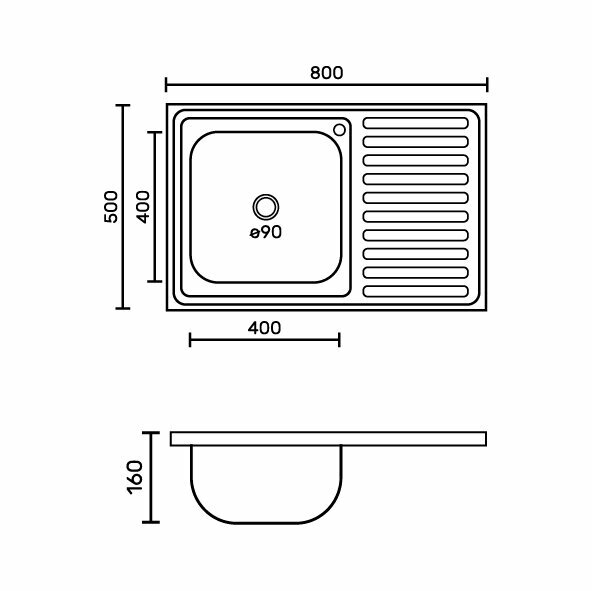 Мойка для кухни FABIA накладная, 80х50, глубина 160 мм, большой сифон с переливом, нержавеющая сталь информация: