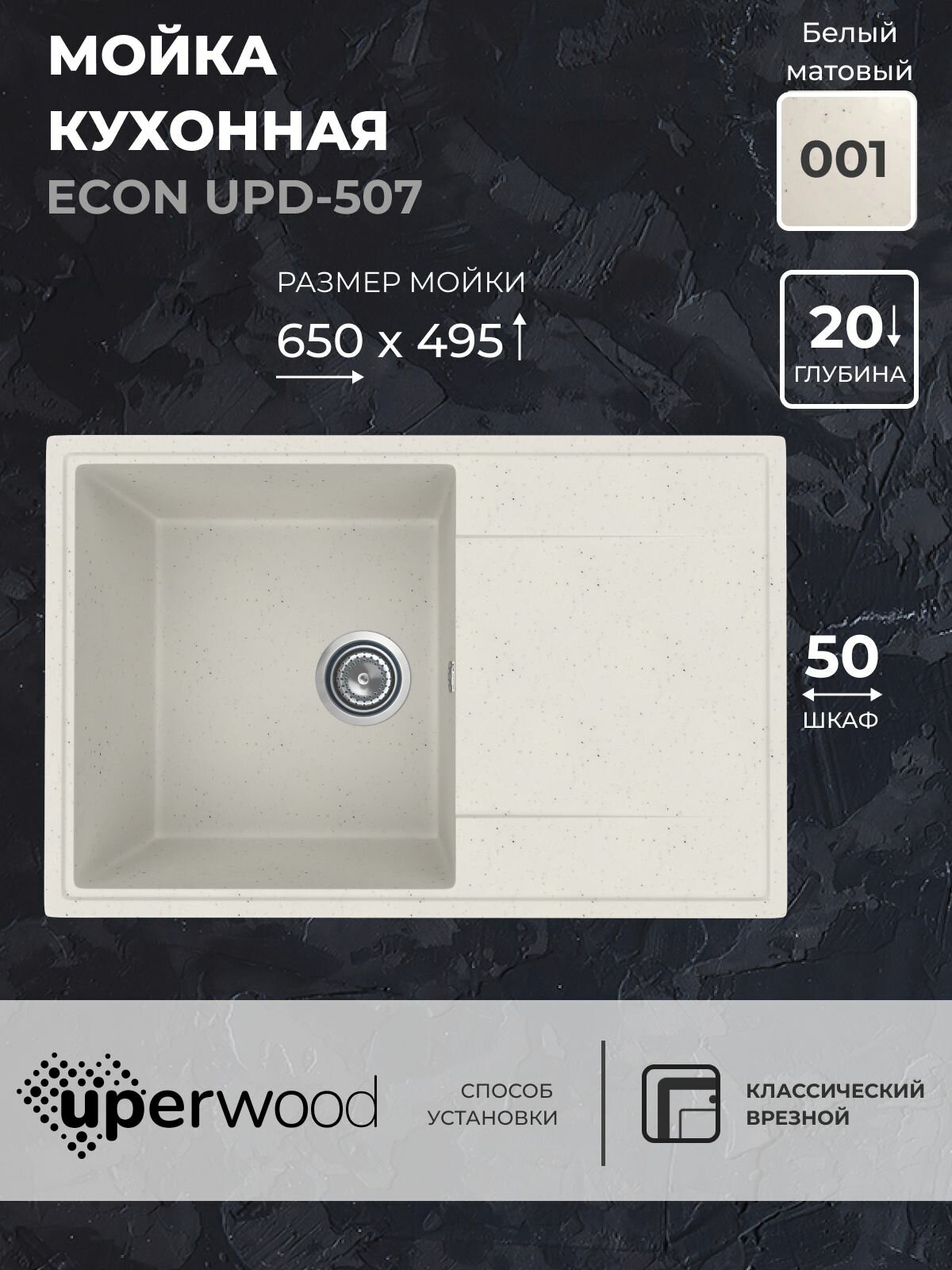 Кухонная мойка из искусственного камня Uperwood ECON UPD-507-001, прямоугольная, белая матовая информация: