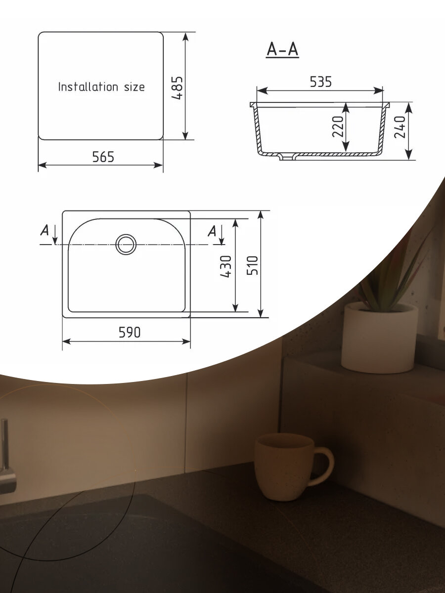 Кухонная мойка, раковина, Ника 570, искусственный камень, графит