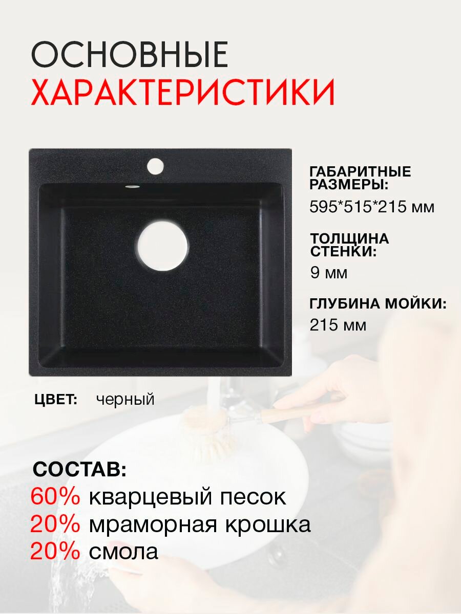 Мойка для кухни из искусственного камня Ulgran U-406-308, черный