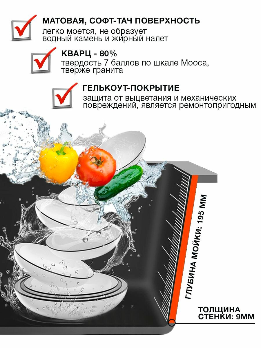 Отзывы на Мойка для кухни из искусственного камня Marrbaxx матовая Линди 8Q4 Цвет черный.
