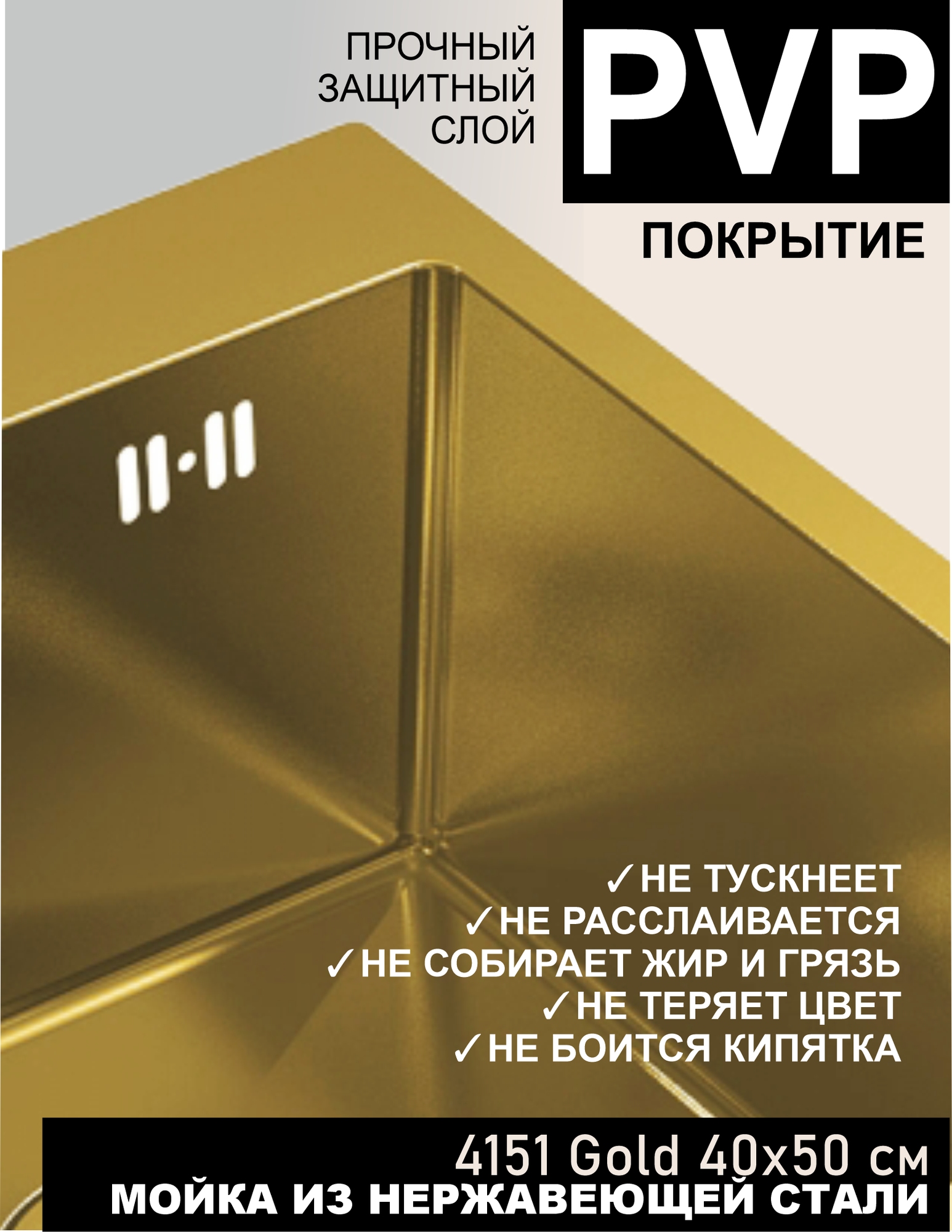Отзывы на Мойка для кухни с PVD покрытием 40х50 см золотая, врезная или монтаж под столешницу, матовая