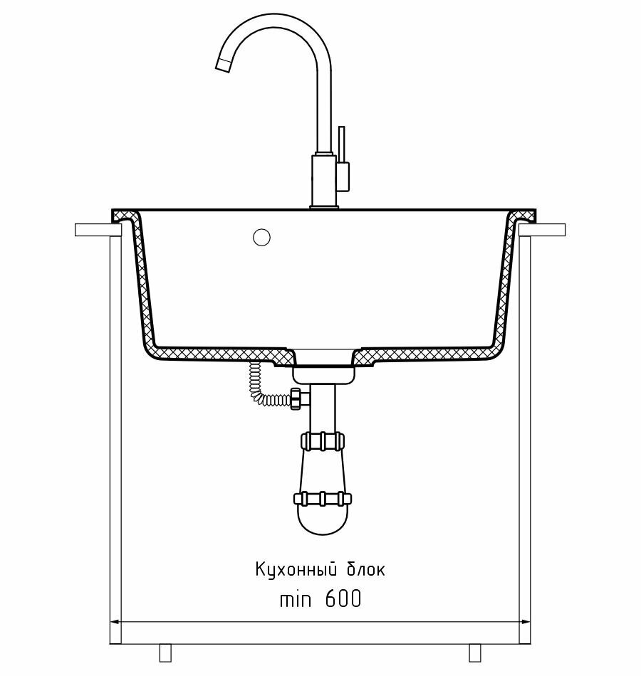 Мойка для кухни из искусственного камня Ulgran U-406-308, черный