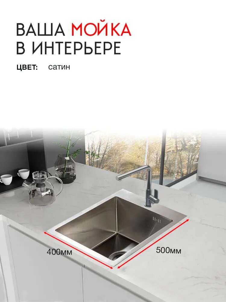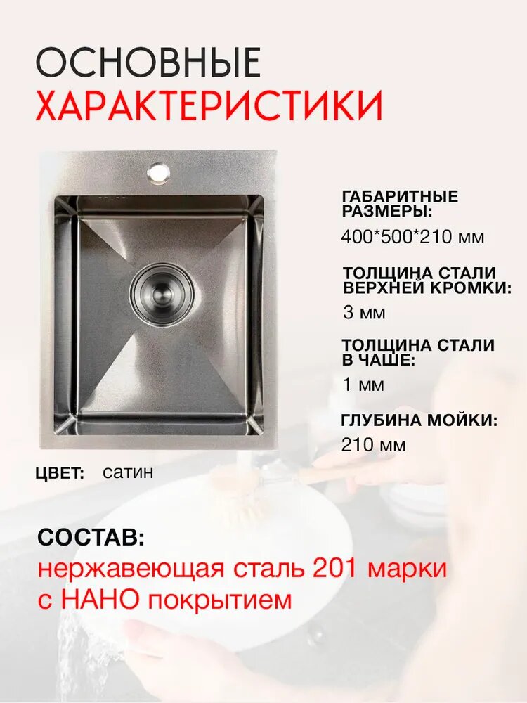 10 цен на Мойка для кухни нержавеющая 40*50см. Раковина на кухню нержавейка