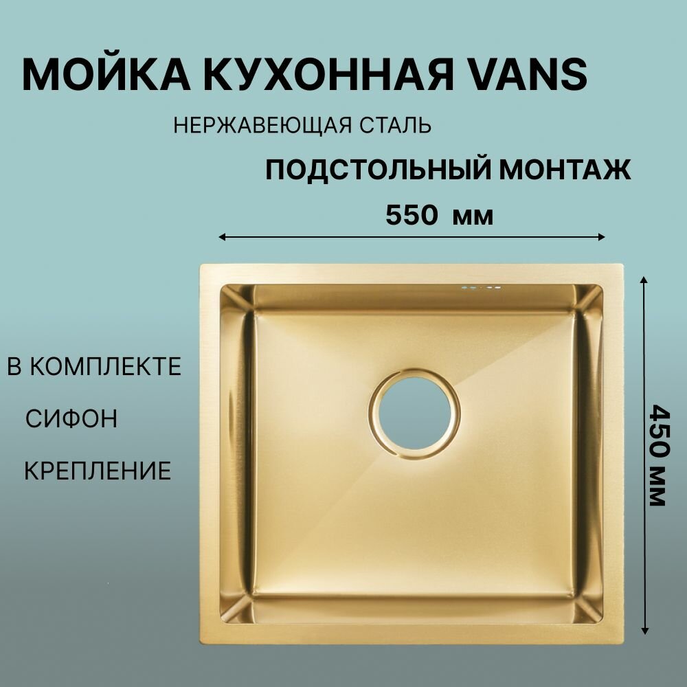 Мойка для кухни нержавеющая подстольного монтажа VANS UTM 55*45 см, цвет Gold информация: