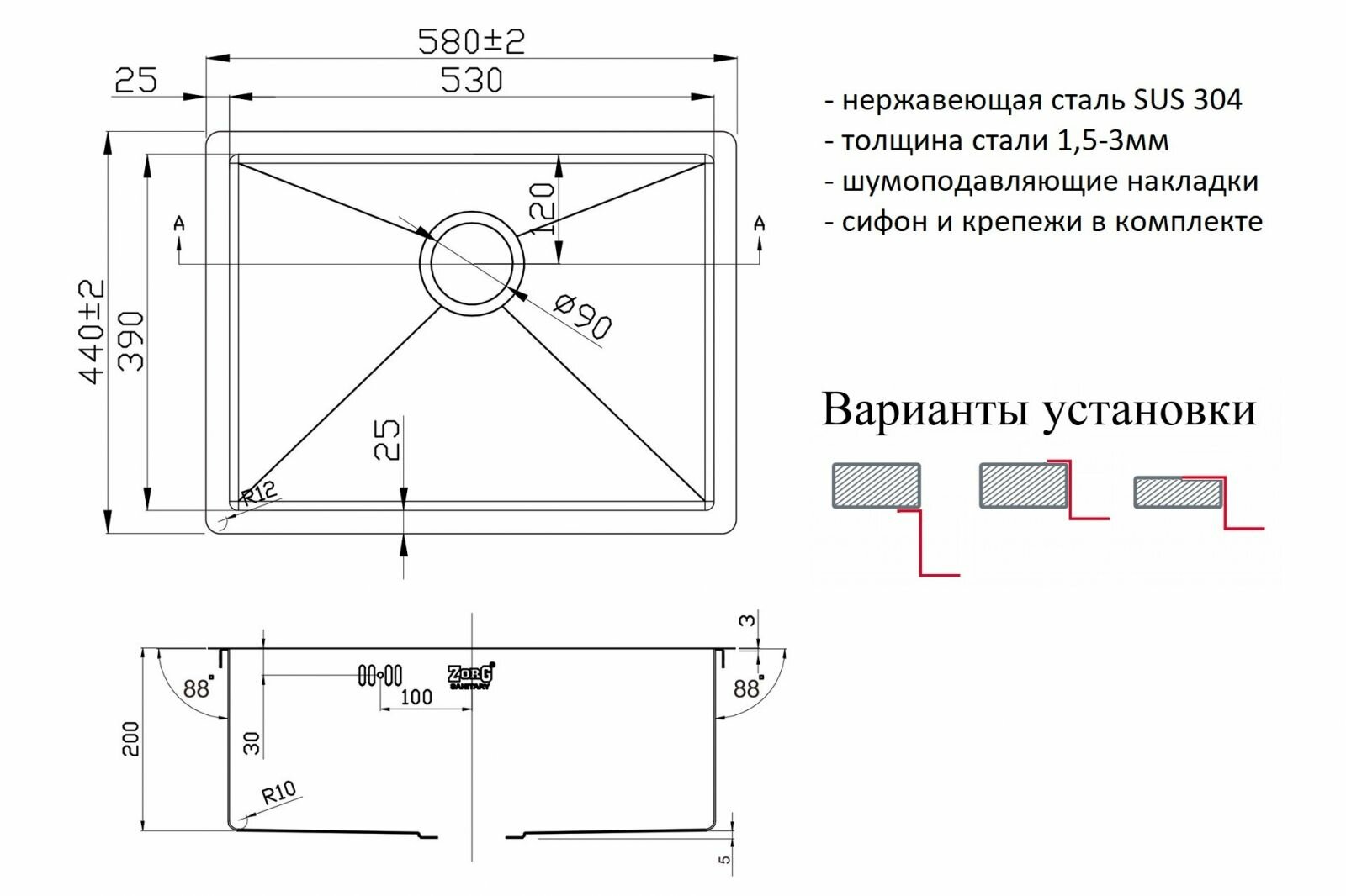 Отзывы на Мойка для кухни ZorG SZR-5844 BRONZE бронза с декоративной накладкой, 58х44 см, без бортика