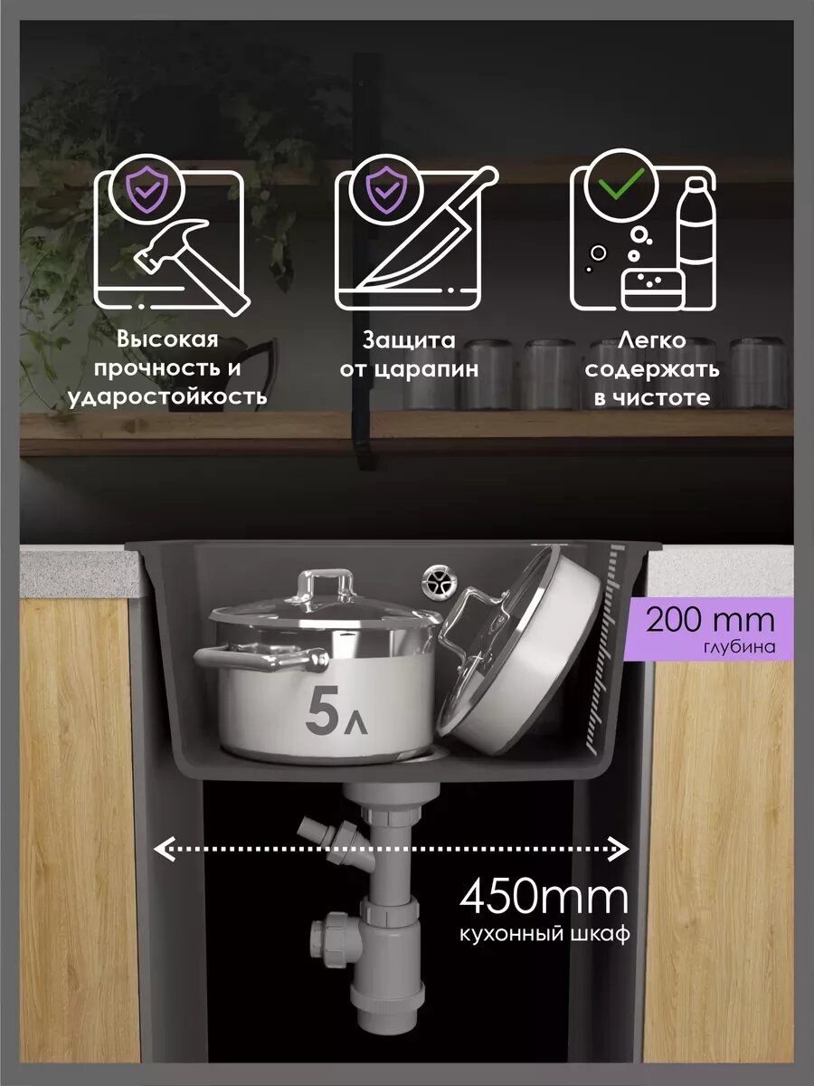 Кухонная мойка, раковина, Ника 570, искусственный камень, графит