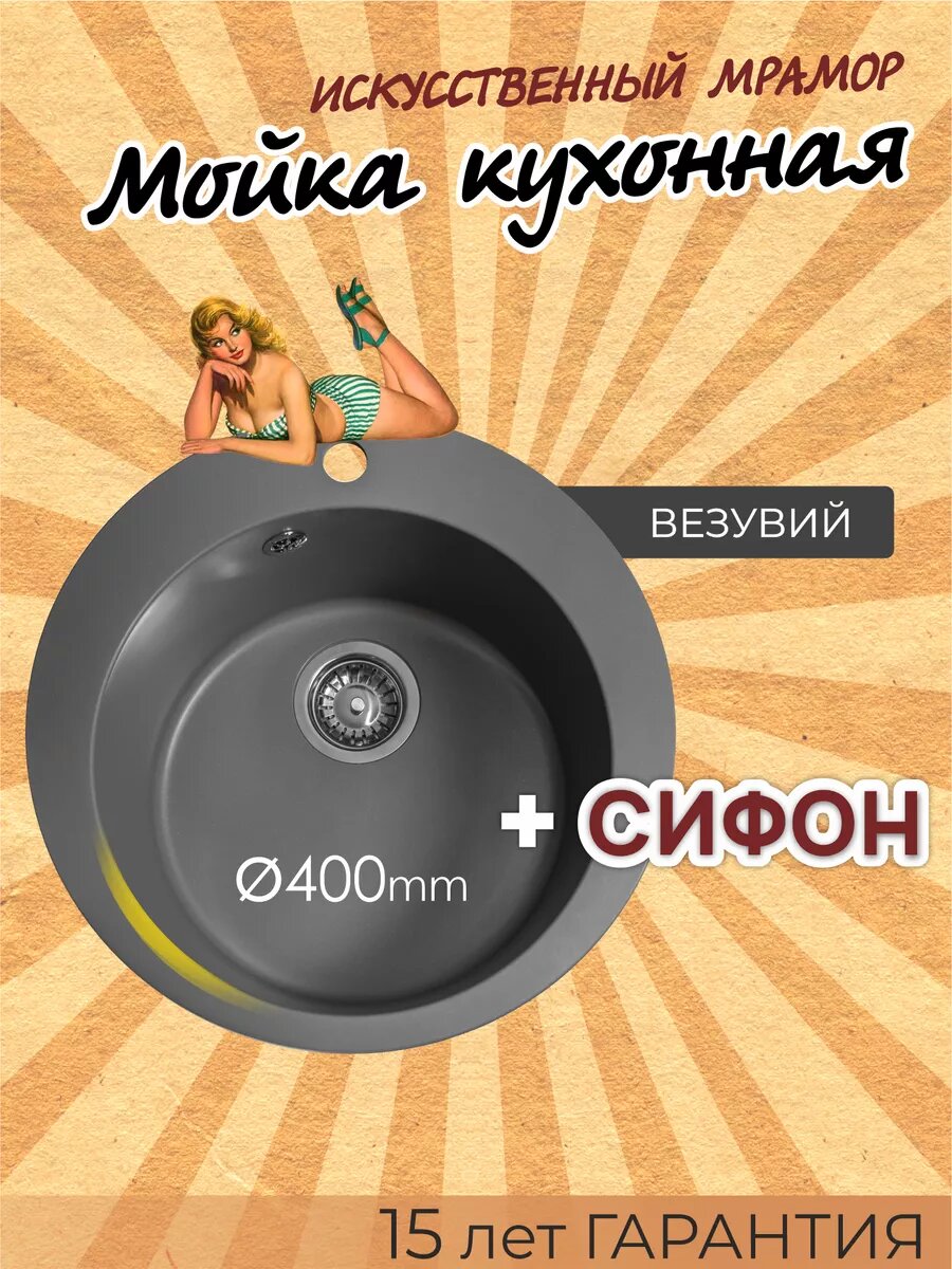 Мойка Dr.Gans "Гала", мраморная, накладная, круглая, везувий, 51x51 см информация: