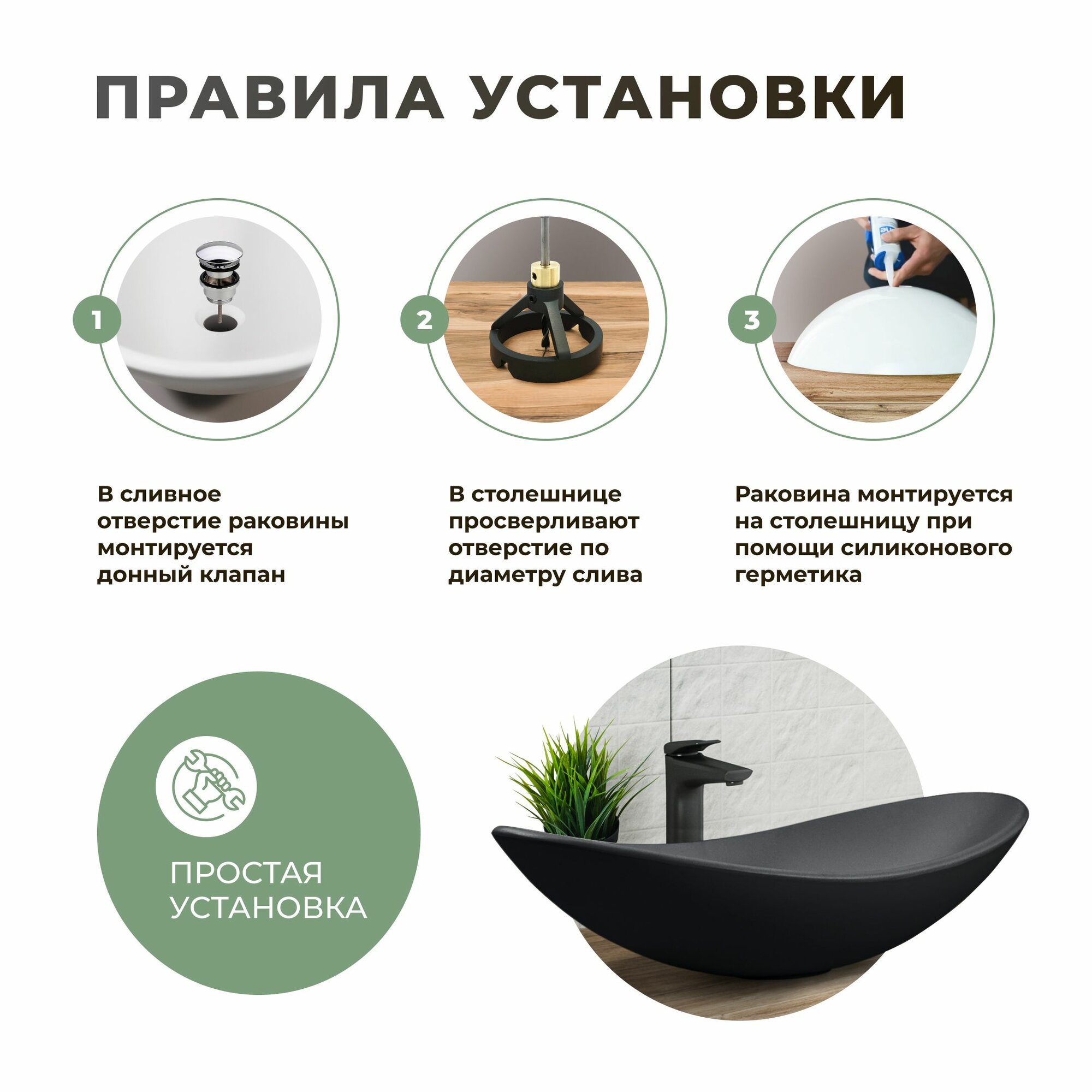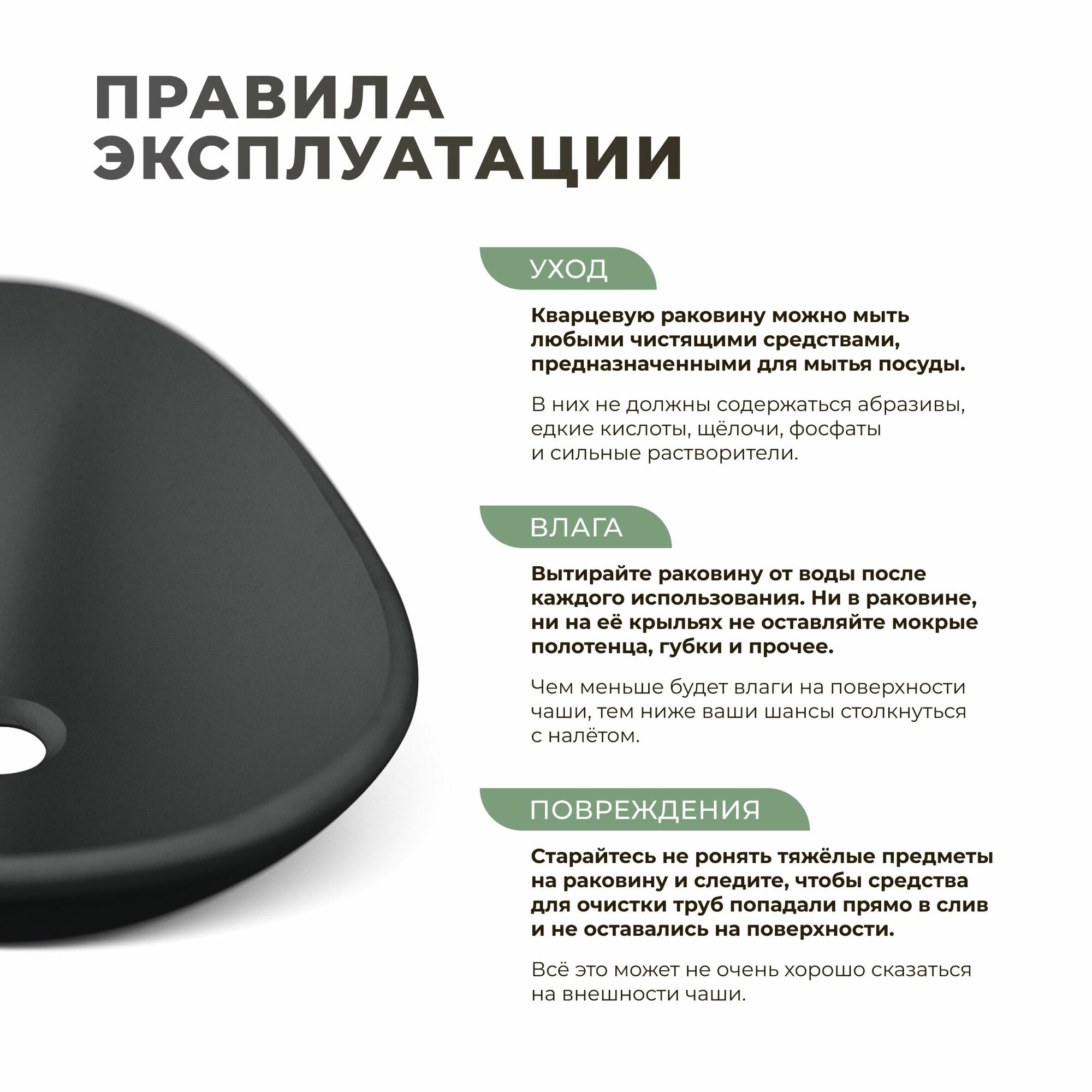 Отзывы на Раковина, овальная, накладная, черная, матовая, кварцевая, 54x33x16 см