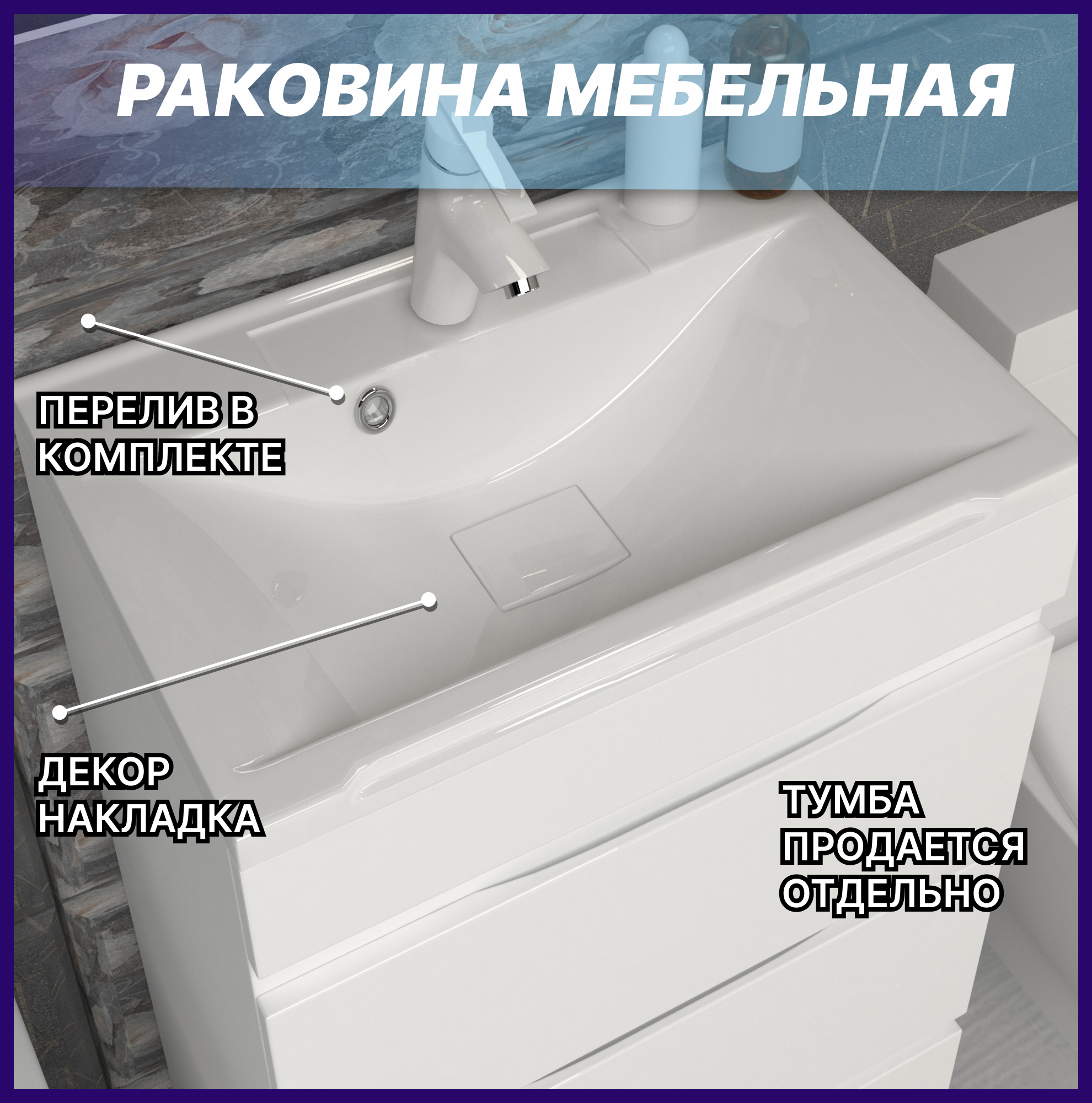 Накладная раковина "Komfort 65" для ванной комнаты информация:
